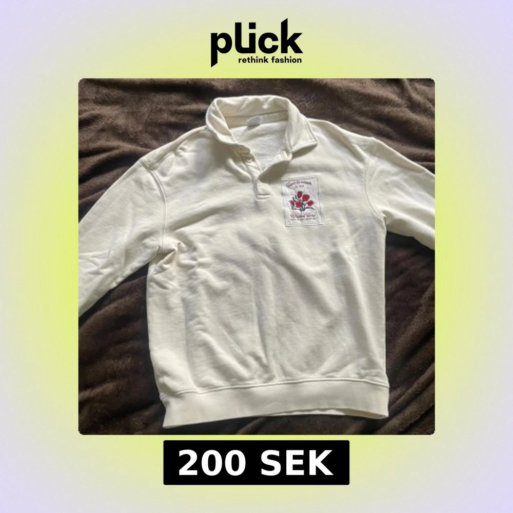 Vit pikétröja från Zara med tryckta röda blommor och texten 'Time to waste is not wasted time' på ryggen. Tröjan har krage, knappar vid halsen och lång ärm. Perfekt för dig som gillar unika detaljer och stilrena färger.