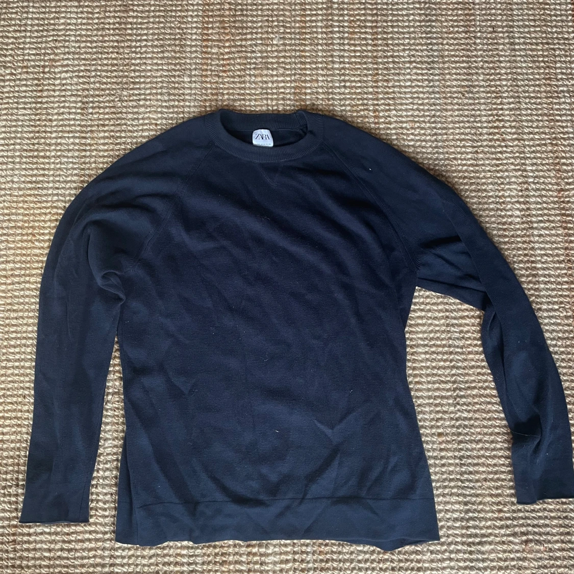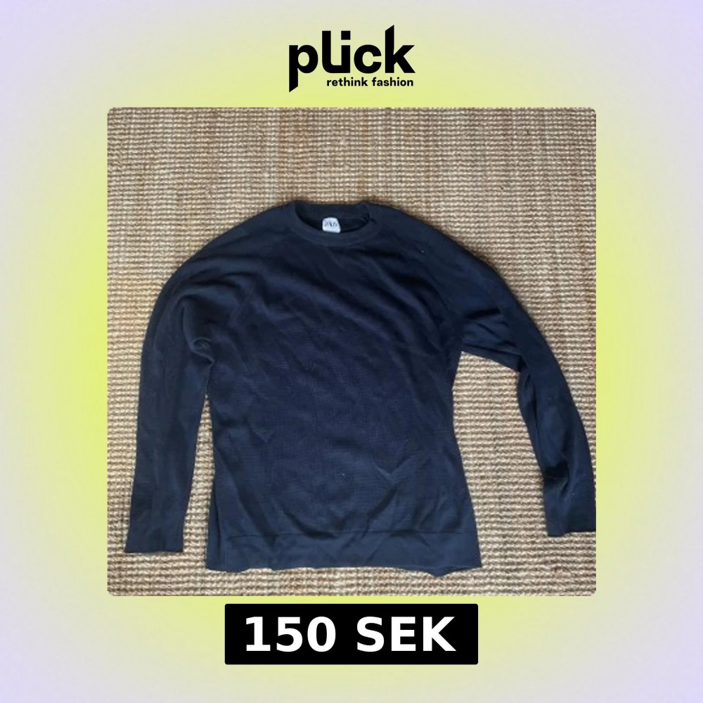En stilren svart stickad tröja från Zara med rund halsringning och långa ärmar. Perfekt för lager-på-lager och enkel att matcha med olika outfits. Tröjan har en klassisk passform och är mjuk mot huden.