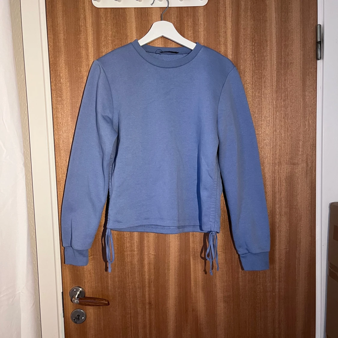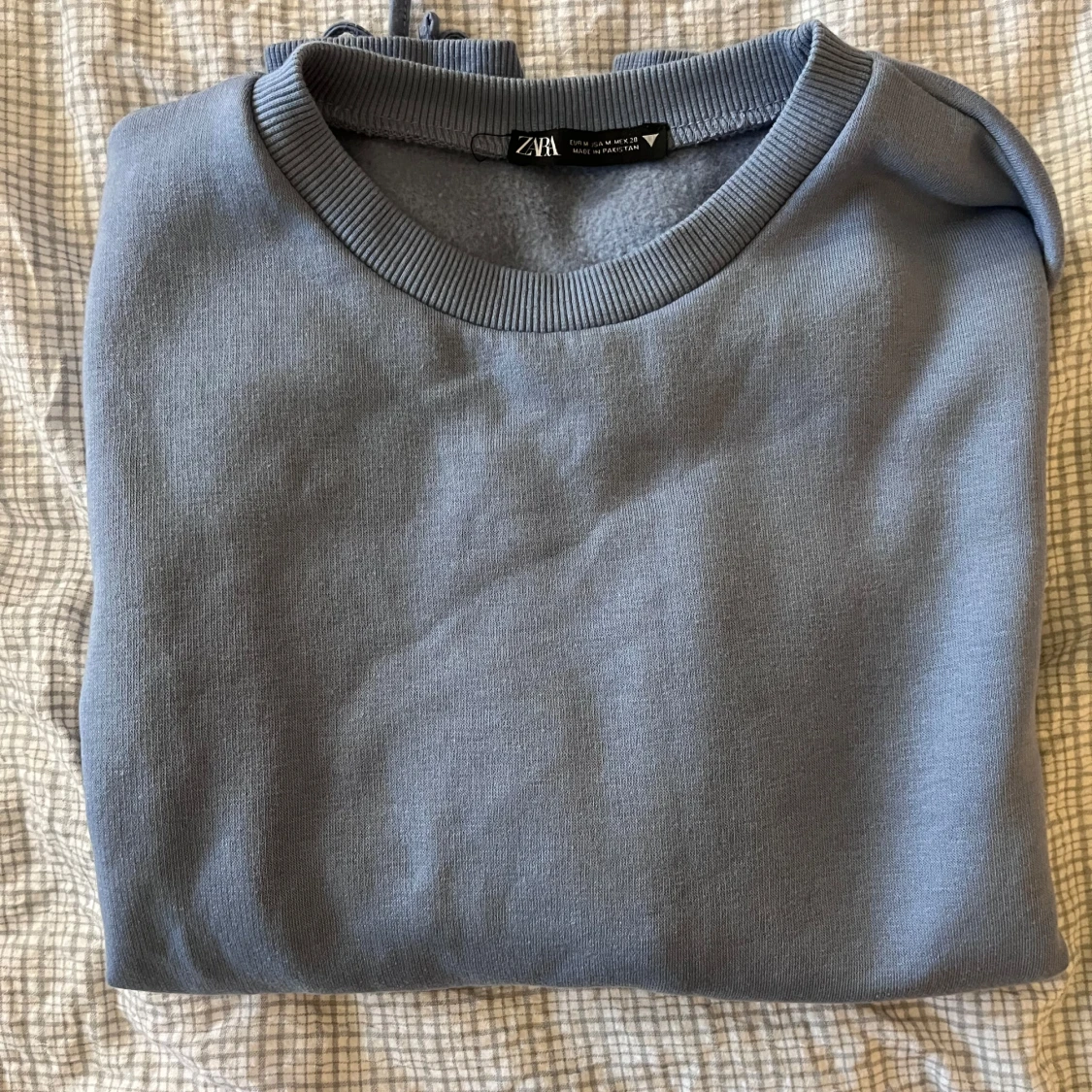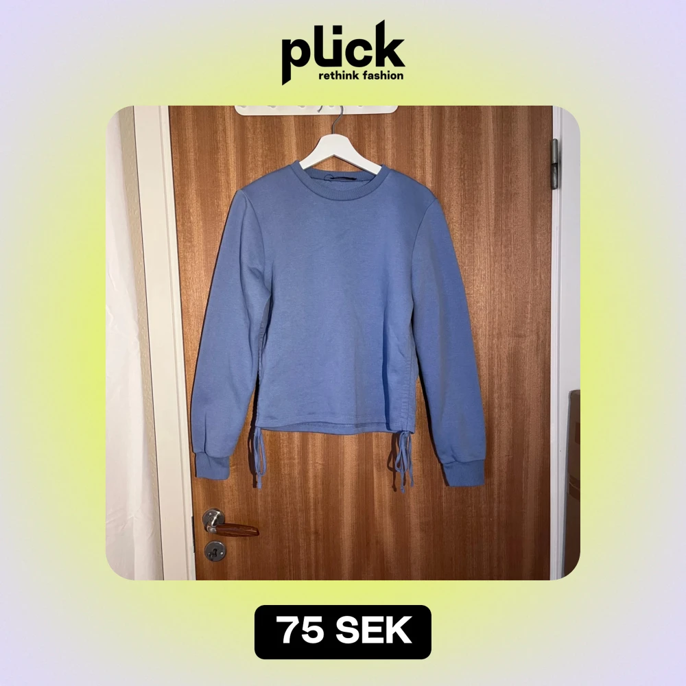 Säljer en snygg lila/blå tröja från Zara i mycket bra skick. Den har långa ärmar och en ribbad rund halsringning. Perfekt för både vår och höst, och den har coola snördetaljer på sidorna som ger en extra touch. Superbekväm och lätt att matcha med jeans eller kjol!