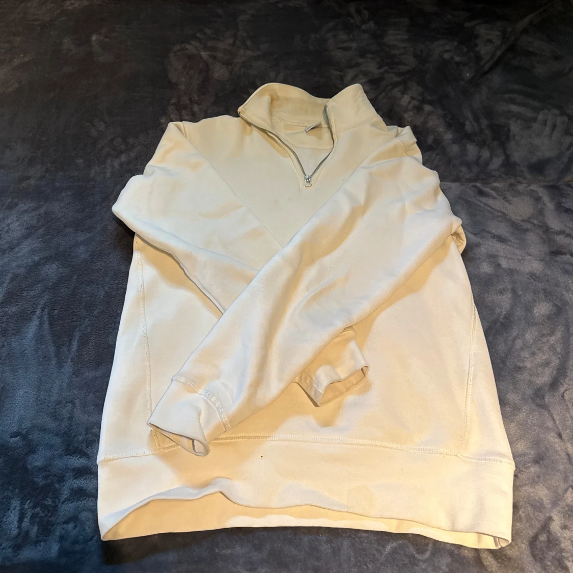 Snygg beige långärmad tröja med krage och half zip-dragkedja framtill. Perfekt för dig som gillar en clean och enkel stil. Materialet känns mjukt och skönt mot huden, och den neutrala färgen gör den lätt att matcha med andra plagg.