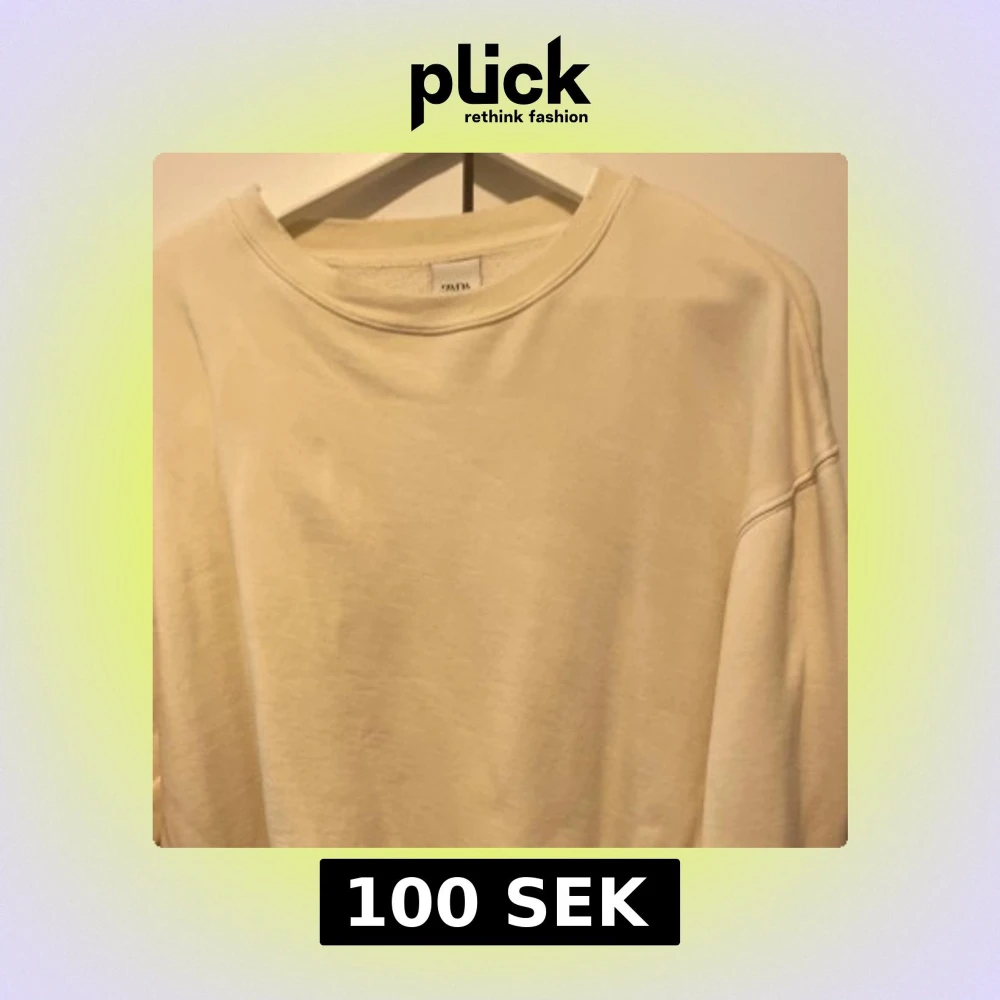 Enkel och stilren beige sweatshirt från Zara i storlek M. Tröjan har rund halsringning, långa ärmar och en relaxed passform. Perfekt för dig som gillar en clean och avslappnad look. Mjuk insida som gör den extra skön att bära.
