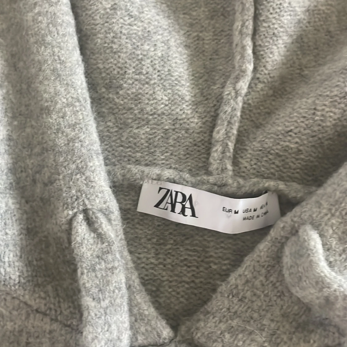 Mysig grå hoodie från Zara i mjukt material. Tröjan har en klassisk huva med dragsko och ribbade muddar vid ärmslut och nederkant.