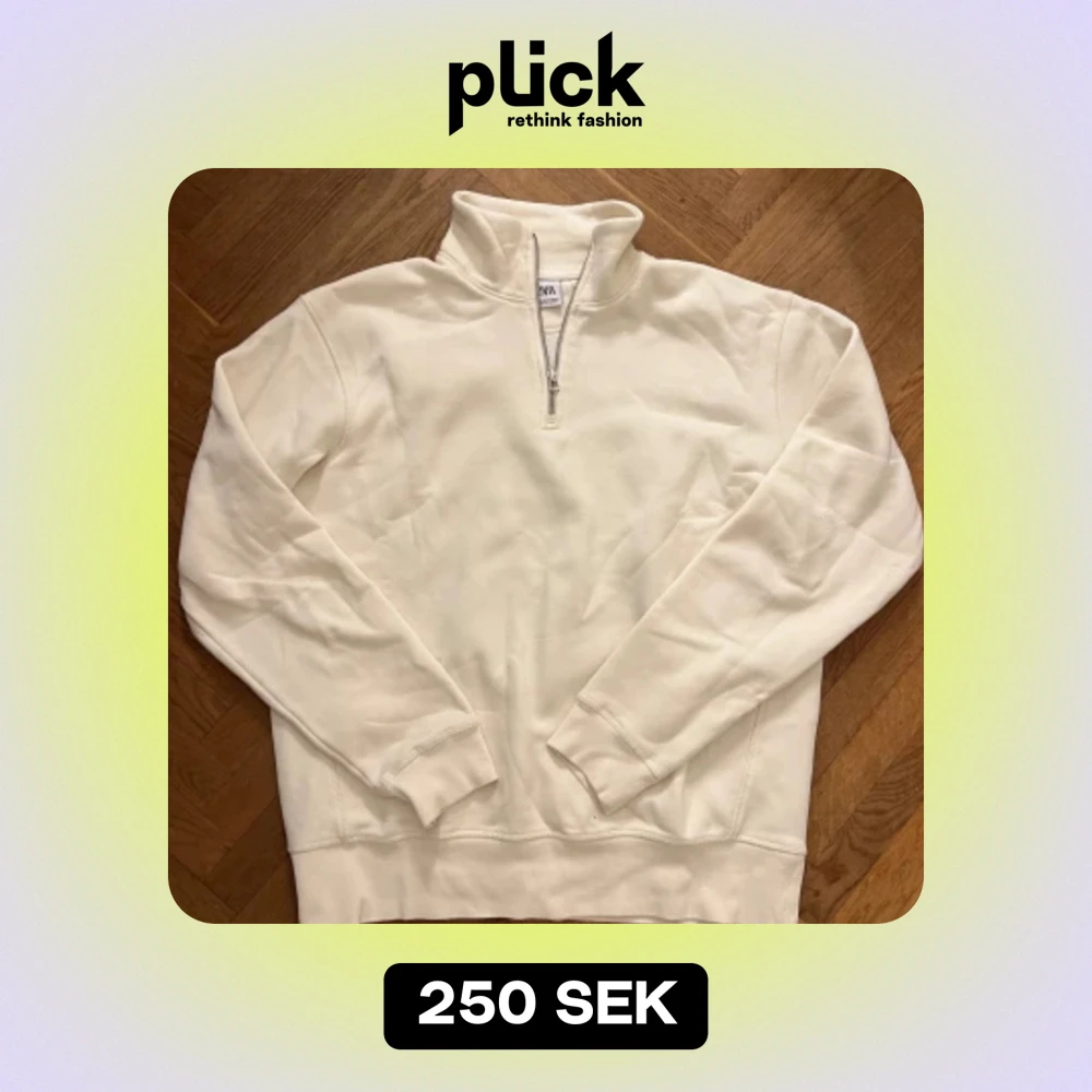 Väldigt stilren vit zip up tröja från zara väldigt trendig i storlek M använd 2-3 gånger