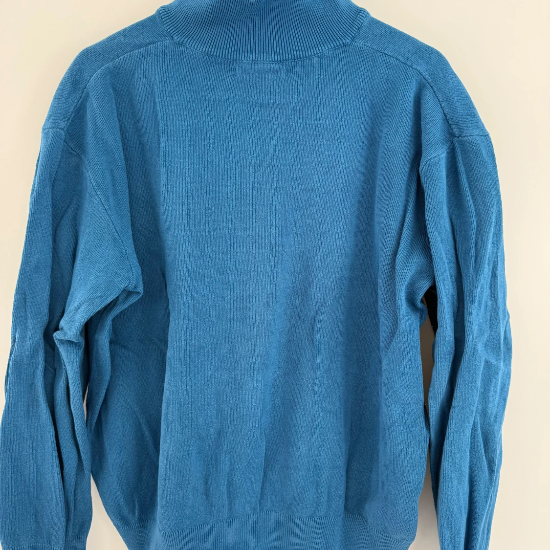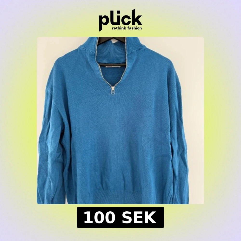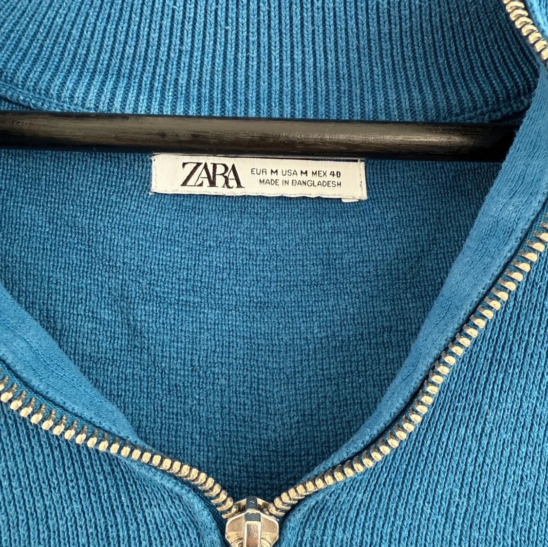 Snygg blå stickad tröja från Zara med halv dragkedja och hög krage.