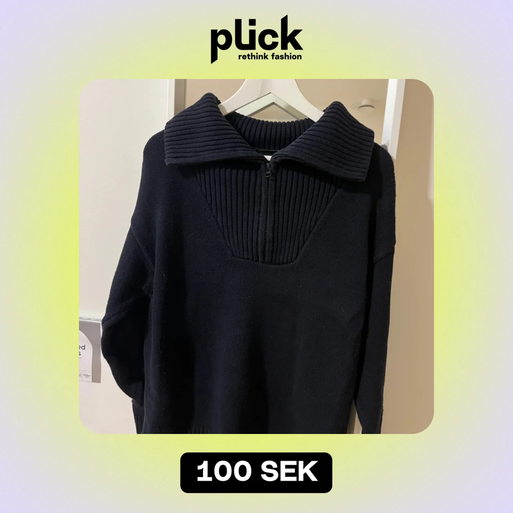 Säljer en snygg marinblå stickad tröja från Zara. Den har en dragkedja framtill och en stor krage som ger en cool look. Perfekt för höst och vinter. Tröjan är i mycket bra skick och redo för en ny ägare!