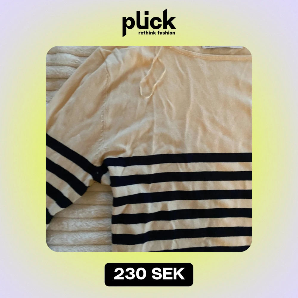 Säljer en snygg beige och svart randig tröja från Zara. Den har långa ärmar och är perfekt för både vår och höst. Tröjan är i bra skick och passar perfekt för en casual look. Supermjuk och bekväm att ha på sig!
