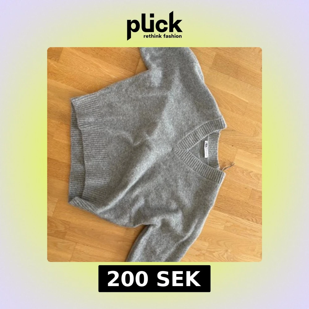 Mysig grå stickad tröja från Zara med v-ringning och breda ribbade muddar vid hals, ärmslut och nederkant. Perfekt för lager-på-lager och chill vibes. Enkel att matcha med jeans eller kjol.