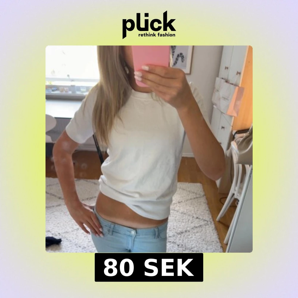 Säljer en basic vit kortärmad tröja från Zara i storlek S. Tröjan har rund halsringning och är gjord i mjuk bomull.
