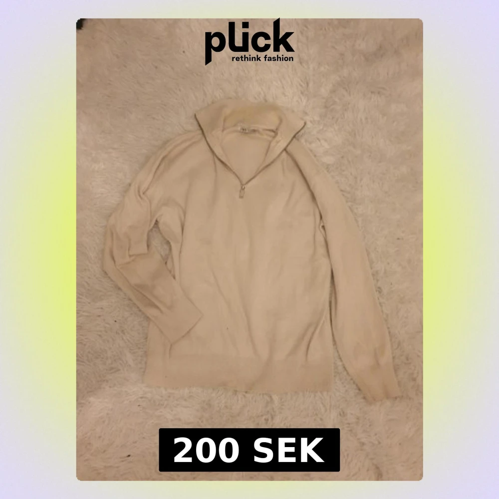 Snygg beige tröja från Zara med halv dragkedja vid kragen. Tröjan har långa ärmar, ribbade muddar och är tillverkad i ett mjukt stickat material. Perfekt för lager på lager och enkel att matcha med olika outfits.