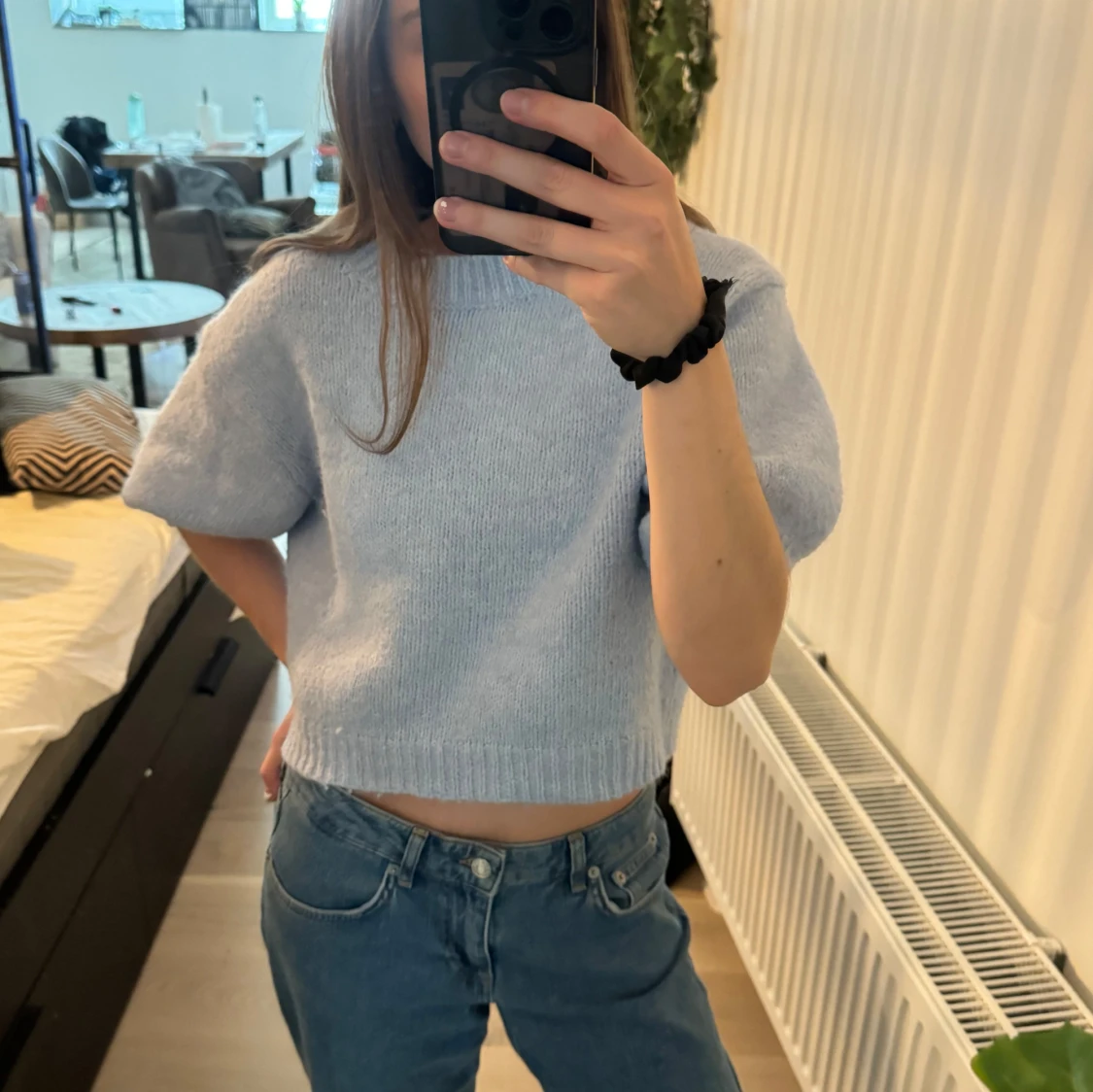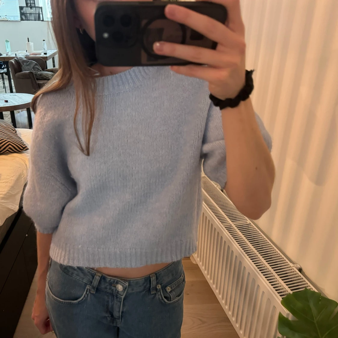 Ljusblå stickad t-shirt. Använd några gånger men är i bra skick