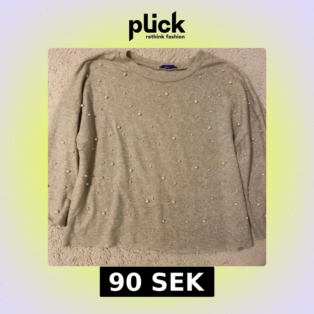 Superfin beige tröja från Zara med pärldetaljer framtill. Tröjan har en rak passform, rund halsringning och 3/4 ärmar. Mjuk och skön, perfekt för dig som gillar en enkel men ändå extra look🍁✨🌆