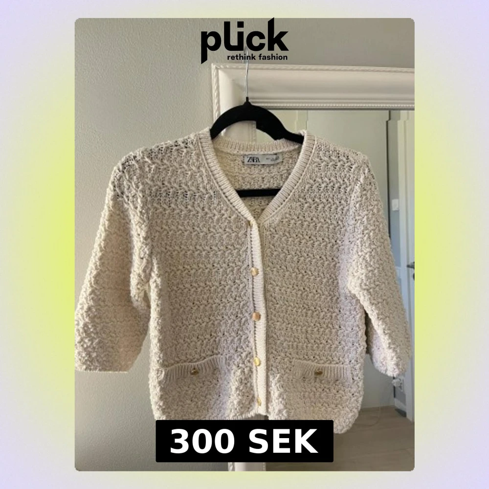 Superfin beige stickad kofta från Zara med guldiga knappar och två fickor framtill. Nästan aldrig använt så är som ny!🤍