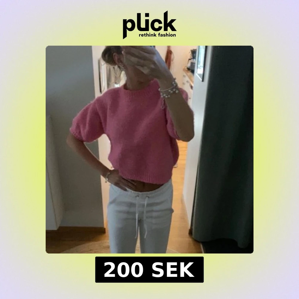 Superfin rosa stickad tröja med croppad passform och korta ärmar. Tröjan har en rund halsringning och ribbade muddar vid ärmslut och nederkant. Perfekt att styla med både jeans och kjol för en trendig look.