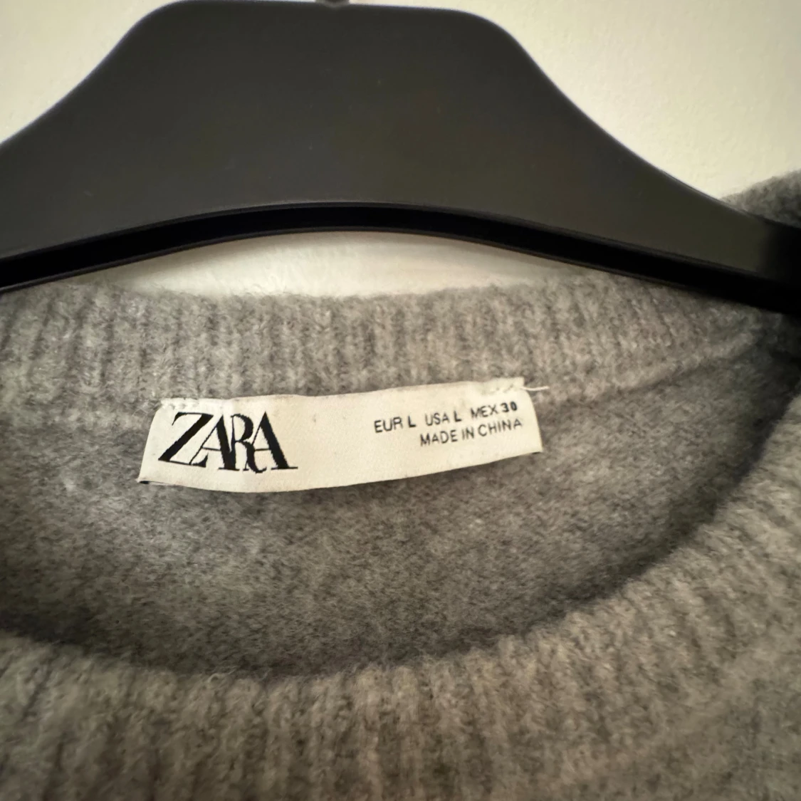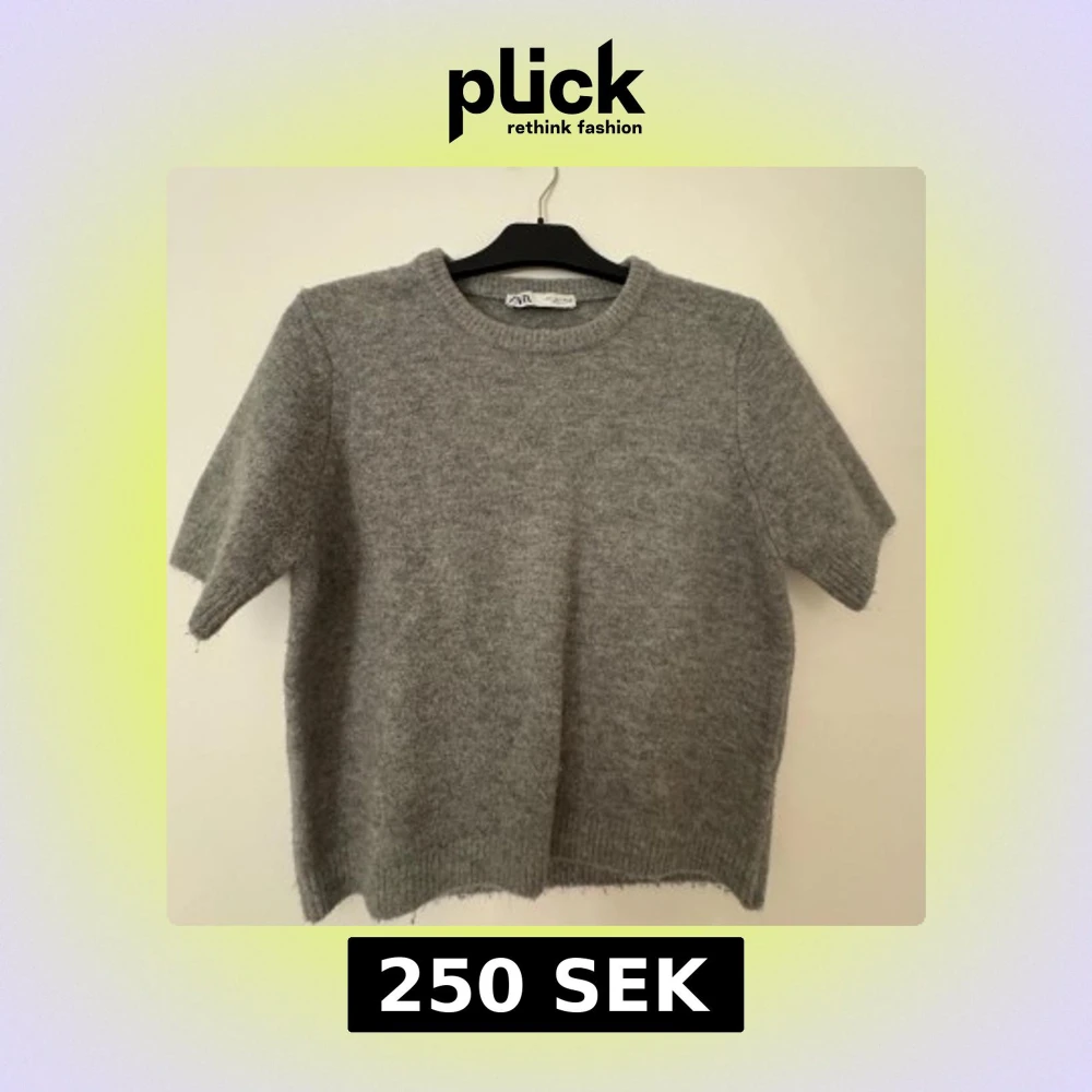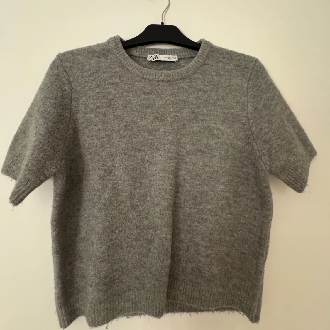 Är storlek L men sitter perfekt på mig som är stolek S-XS. Mysig grå stickad tröja från Zara med korta ärmar och rund hals. Tröjan har en enkel och clean look med ribbade detaljer vid hals och nederkant. Perfekt för dig som gillar basic och vill ha något som funkar till många olika stilar.