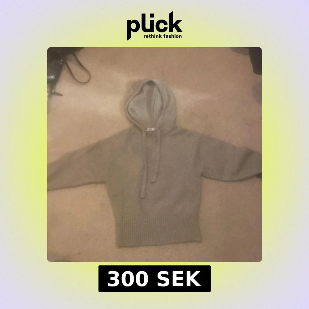 Mysig grå stickad hoodie från Zara med huva och snörning. Tröjan har långa ärmar och bred ribbad mudd nedtill för en snygg passform. Använd max 2 gånger.