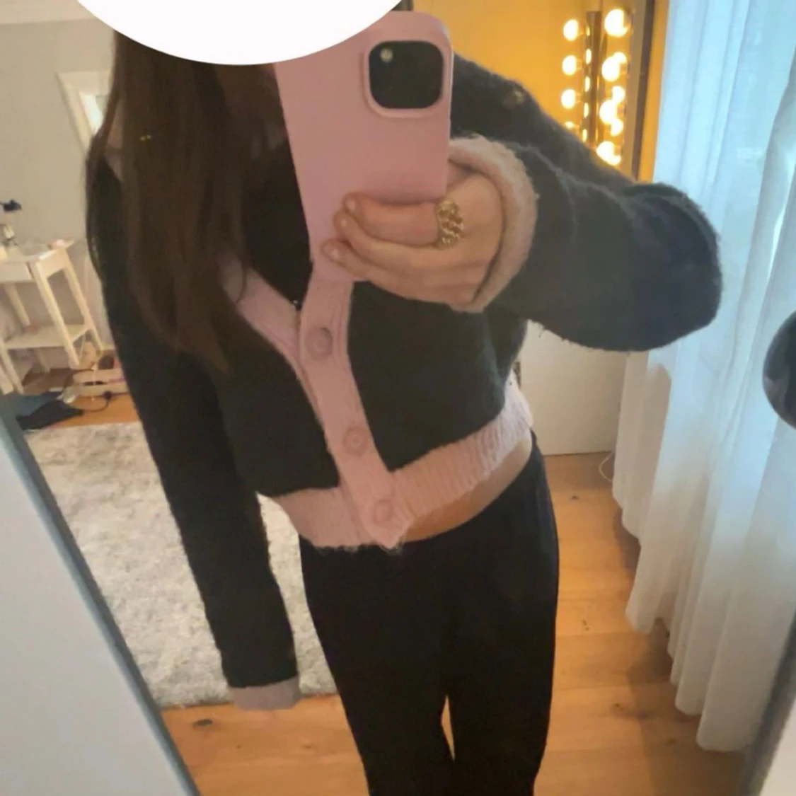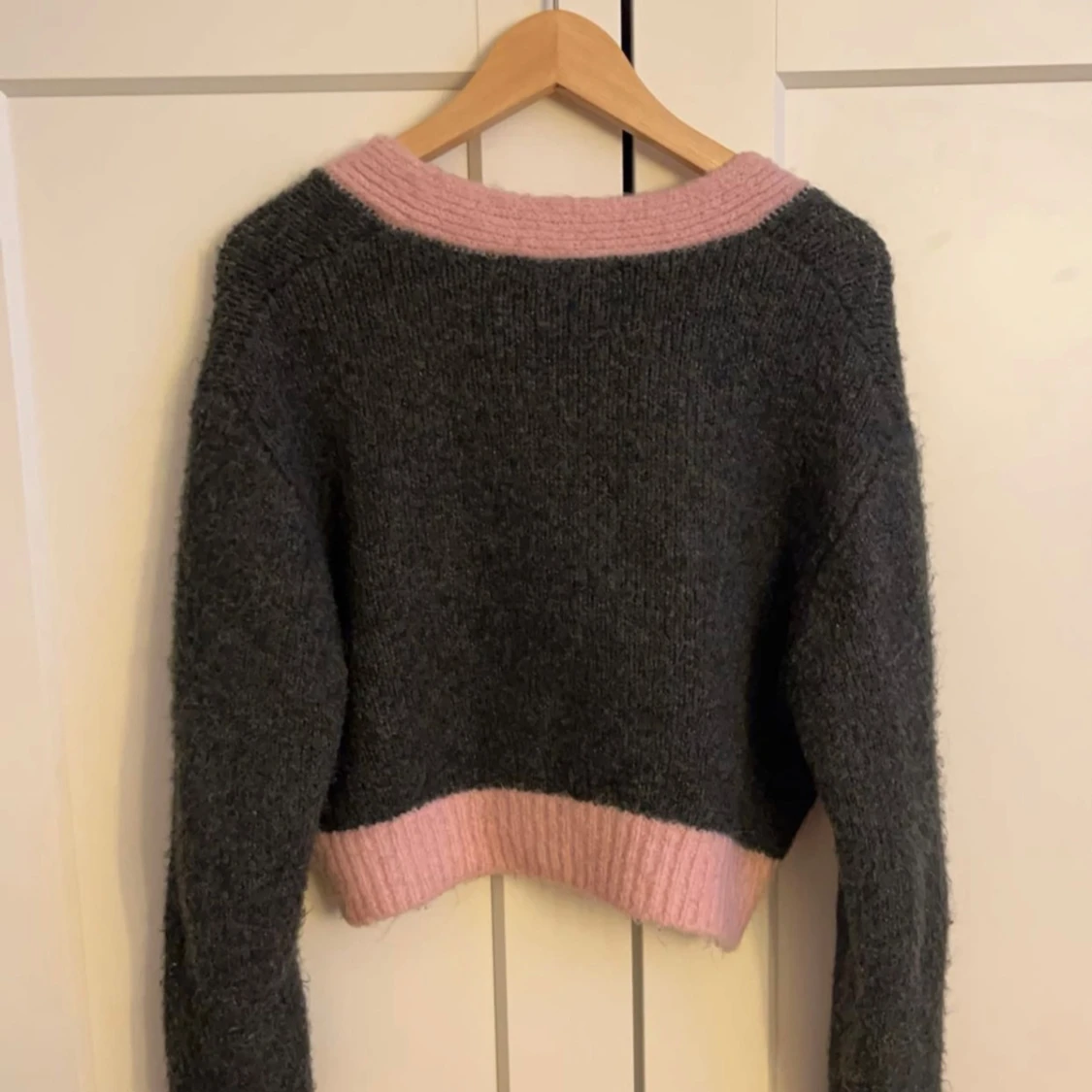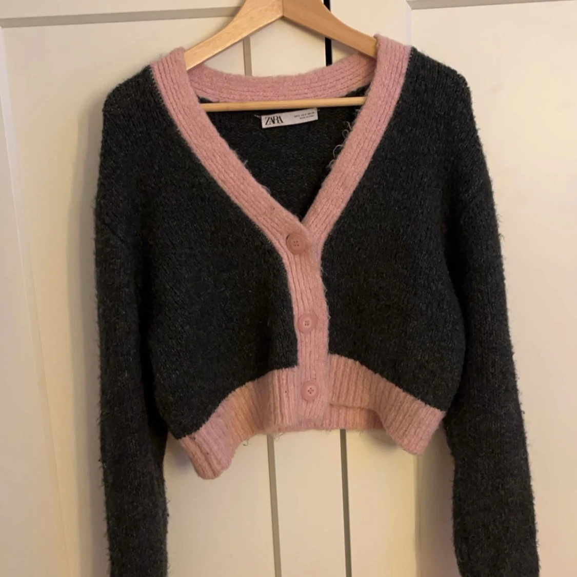 En mörkgrå kofta med rosa detaljer i mycket bra skick i en lite kortare modell. Från Zara i stl S💕