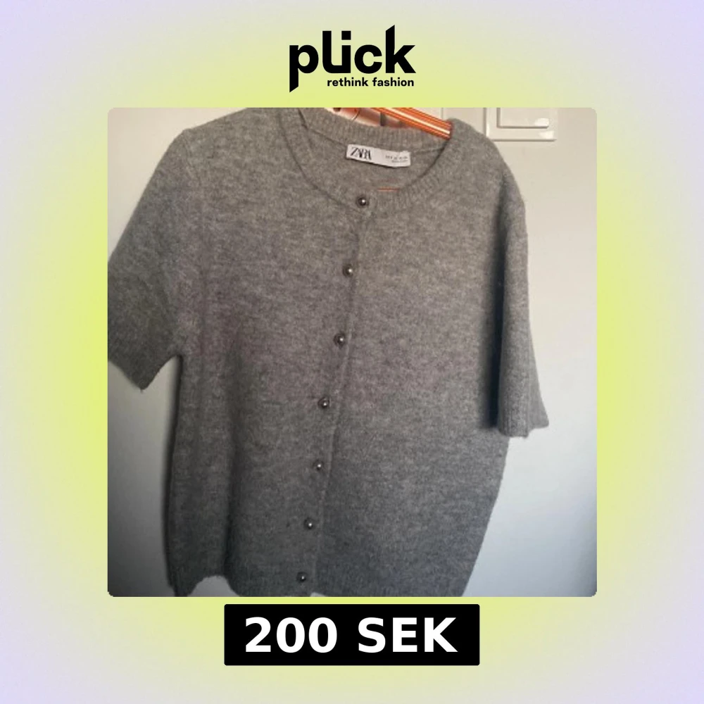 Säljer en stilren grå kofta från Zara med korta ärmar och knappar framtill. Perfekt för lager-på-lager under svalare dagar. Enkel och elegant design som passar till många olika outfits.