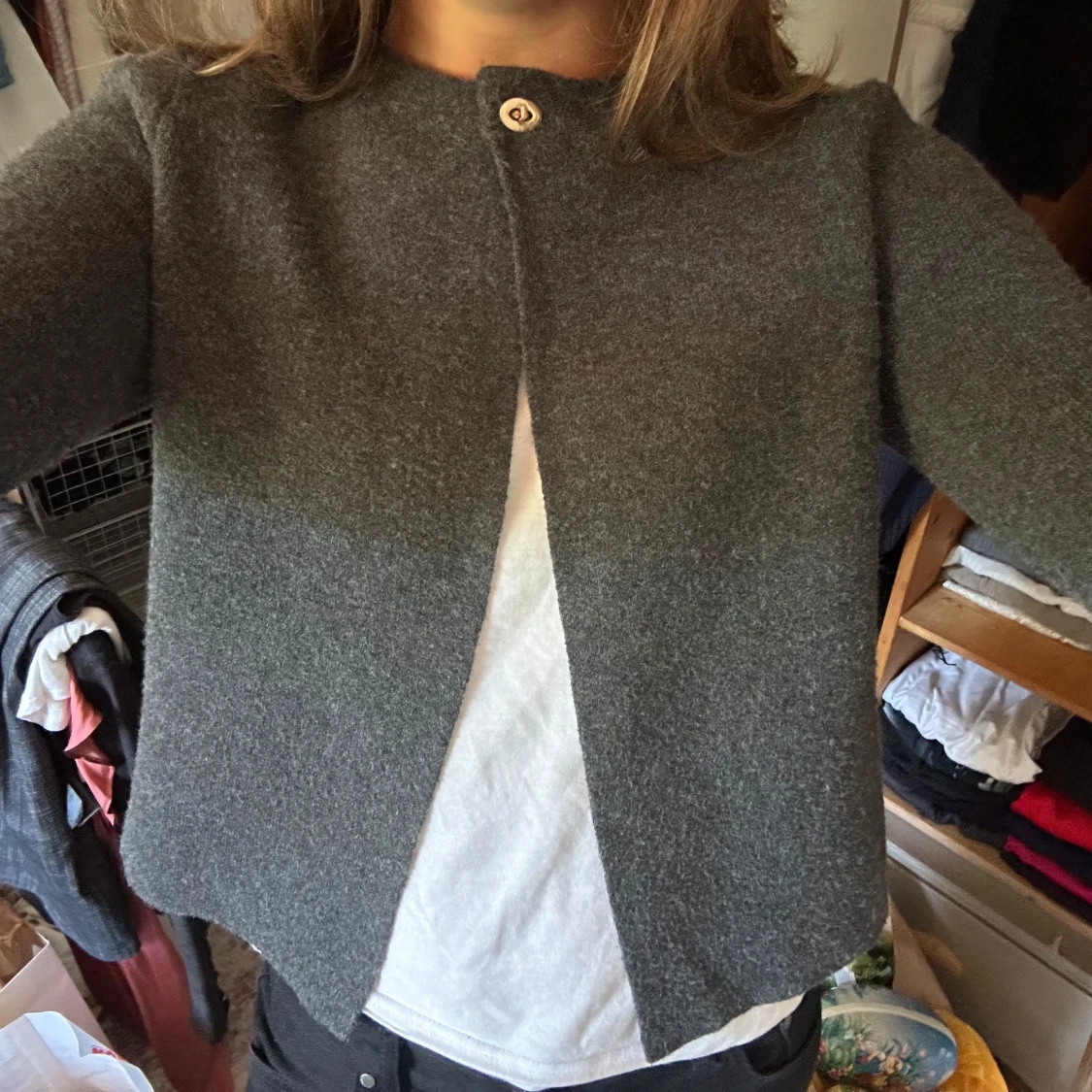 En mörkgrå kofta från Zara i storlek S. Inte tydliga noppror men tecken på användning.