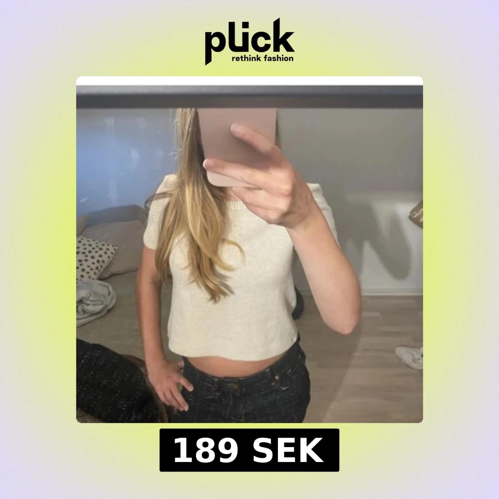 Säljer en beige croppad stickad tröja från Zara med rund hals och korta ärmar. Tröjan har en ribbad kant vid halsen och är perfekt för dig som gillar en enkel och clean stil. Passar snyggt till både jeans och kjol. 💕