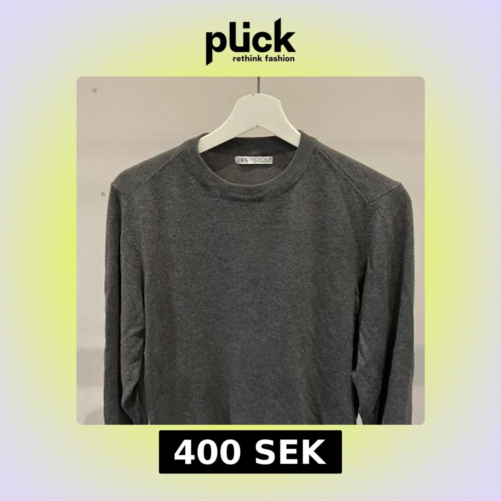 En stilren mörkgrå stickad tröja från Zara med rund halsringning och långa ärmar. Tröjan är enkel och tunn och passar perfekt till lager-på-lager eller som den är. Tillverkad i ett mjukt material som känns skönt mot huden.