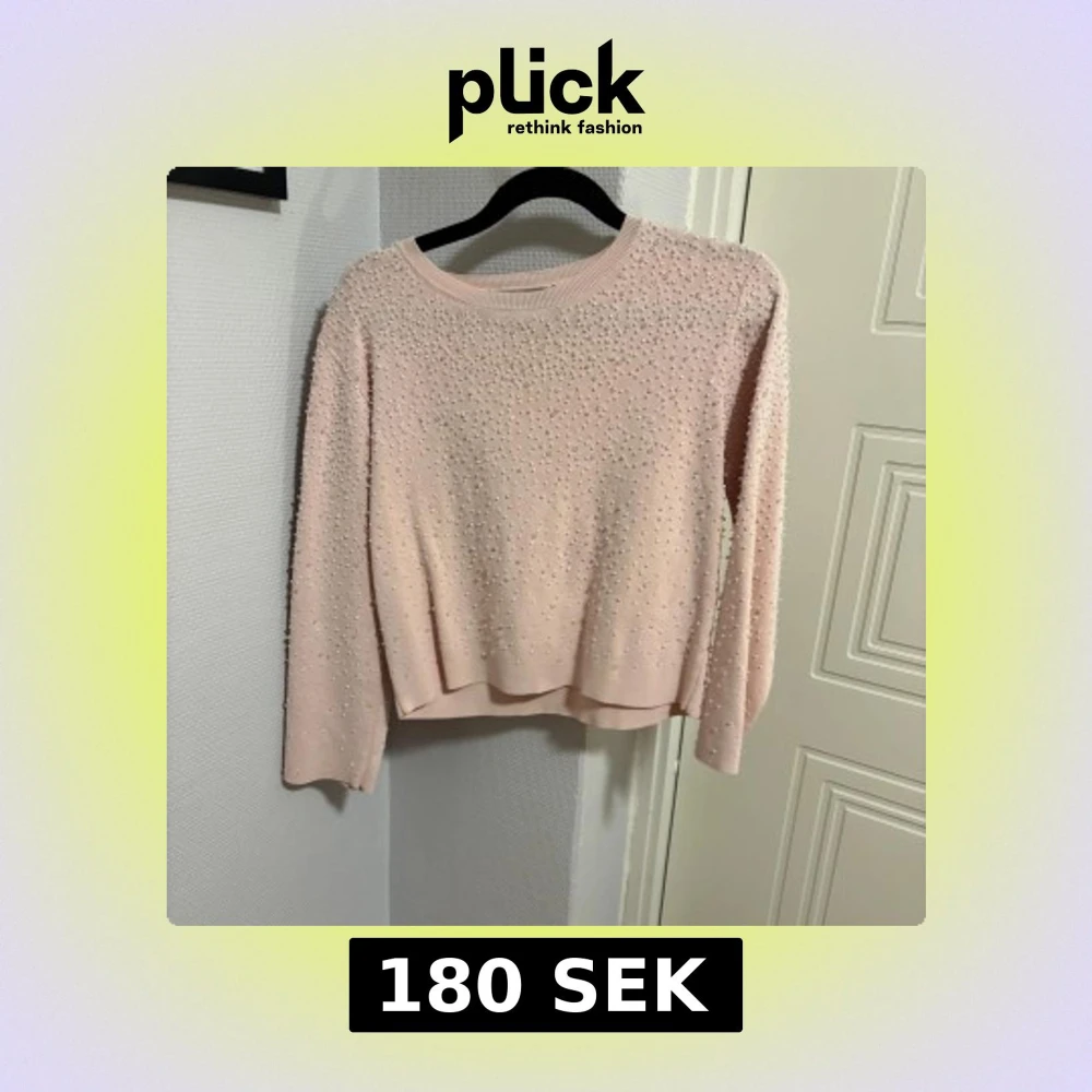 Säljer en söt rosa tröja från Zara dekorerad med pärlor över hela ytan. Tröjan har långa ärmar och en rund halsringning. 🌸