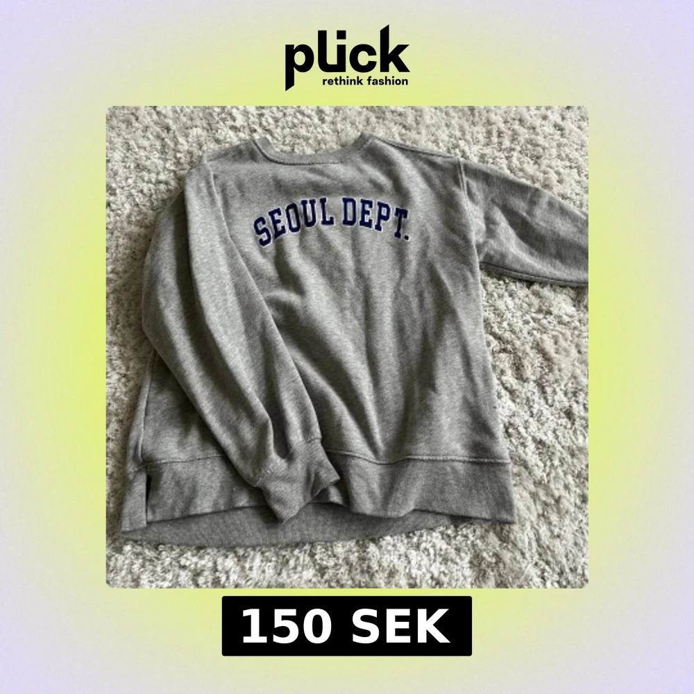 Grå sweatshirt från Zara med blå texten 'SEOUL DEPT.' på ryggen. Klassisk modell med rund hals, ribbade muddar och mjuk insida. Perfekt för en chill och avslappnad stil. barn storlek 164 men passar s
