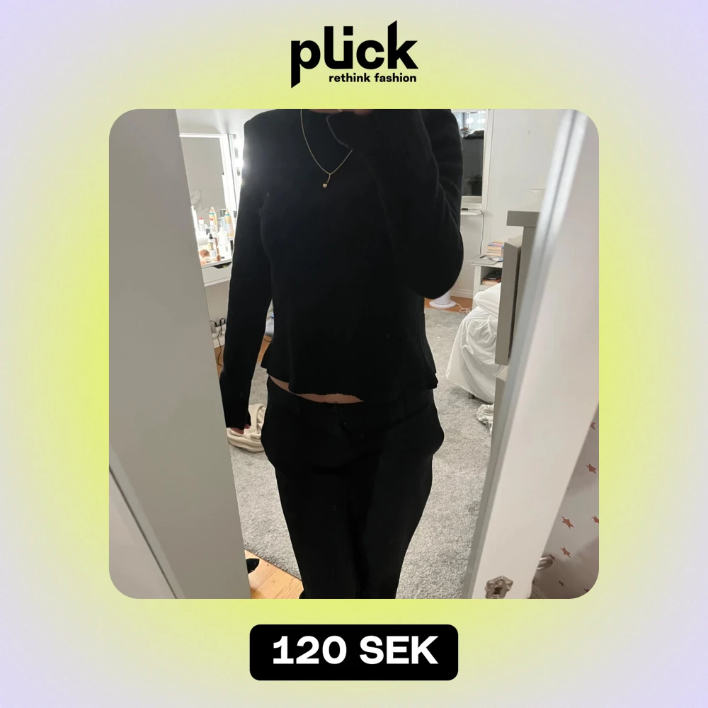 Säljer en stilren svart långärmad tröja i bra skick. Perfekt för höst och vinter, med en tight passform som framhäver figuren. Tröjan är enkel men elegant, vilket gör den lätt att matcha med olika outfits.