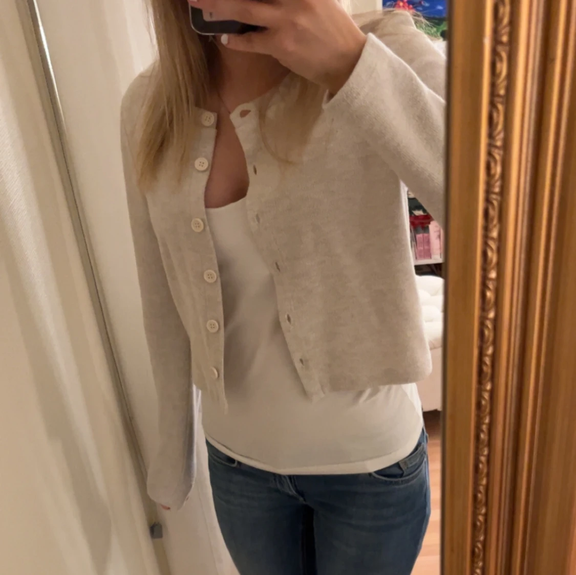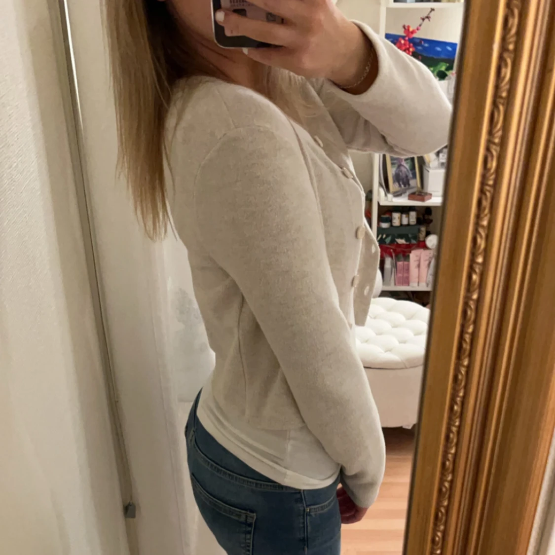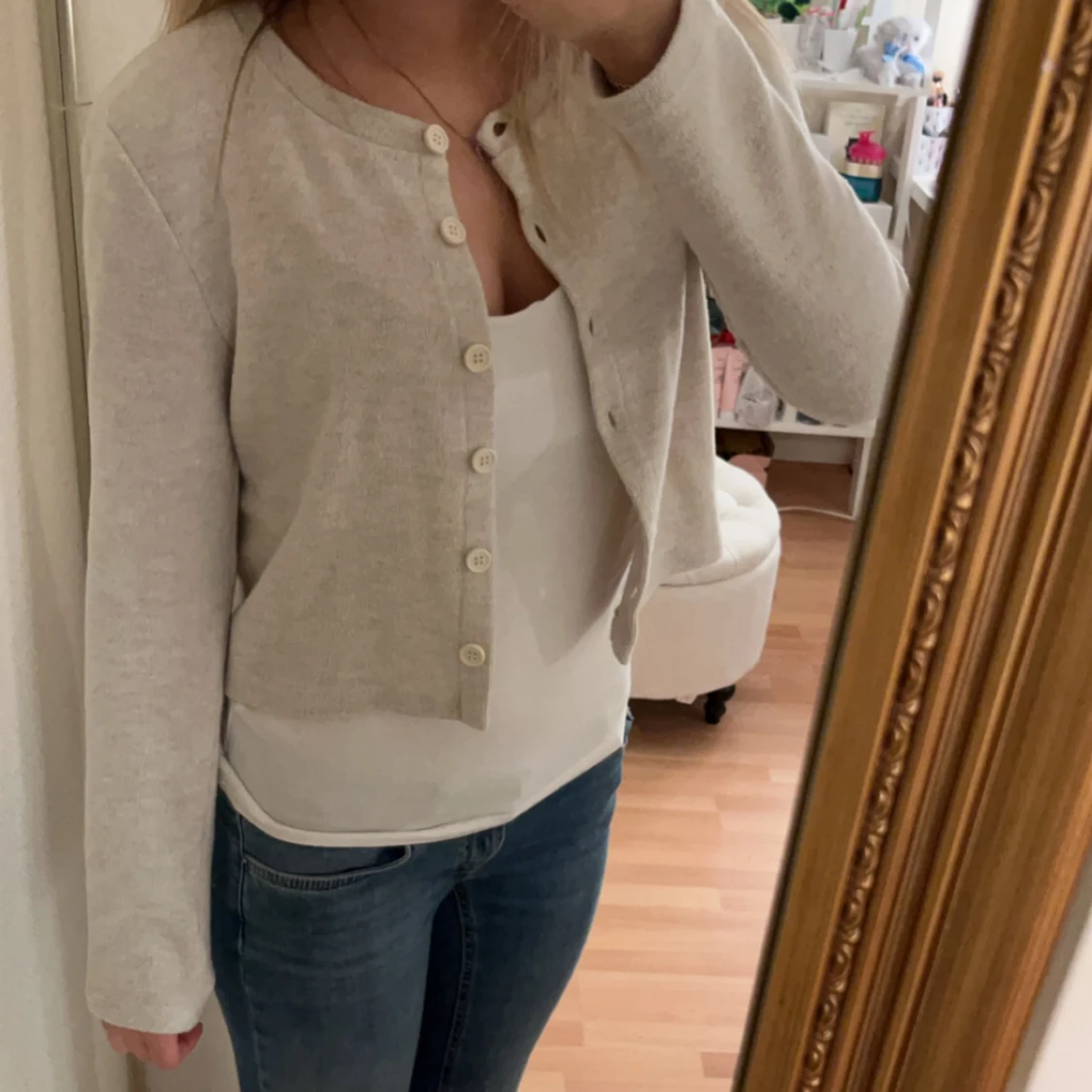 Säljer denna beigea finstickade kofta från Zara. Den har en bra passform och sitter skönt. Den är knappt använd💓💓