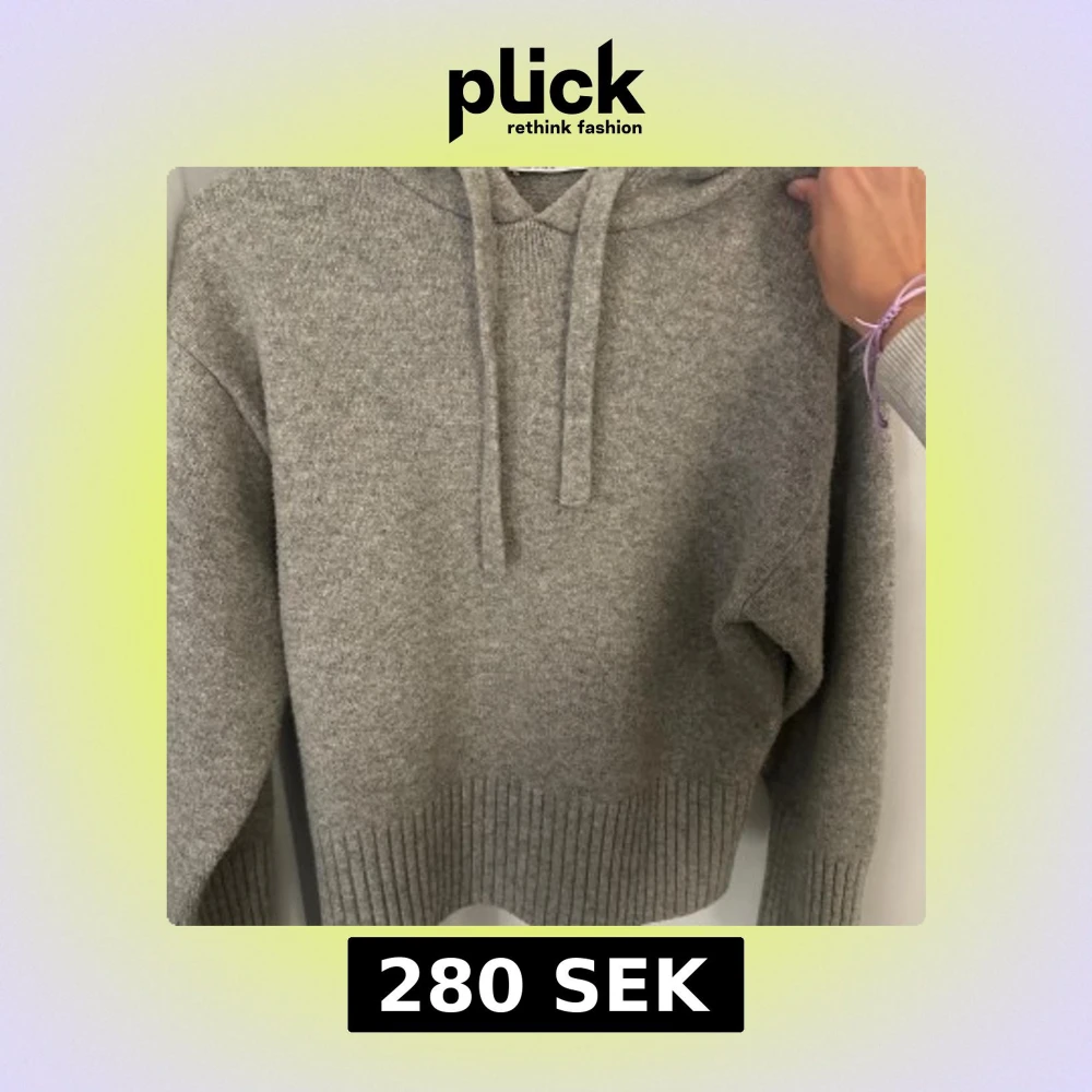 Jättefin grå hoodie från Zara!! Supermjuk grå stickad hoodie från Zara med ribbade muddar och nederkant. Tröjan har huva med snörning och lång ärm, perfekt för en chill och snygg look. Passformen är normal och materialet känns riktigt cozy.