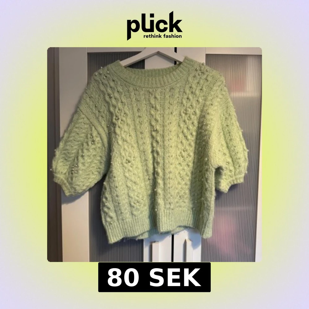 Ljusgrön stickad tröja med pärlor