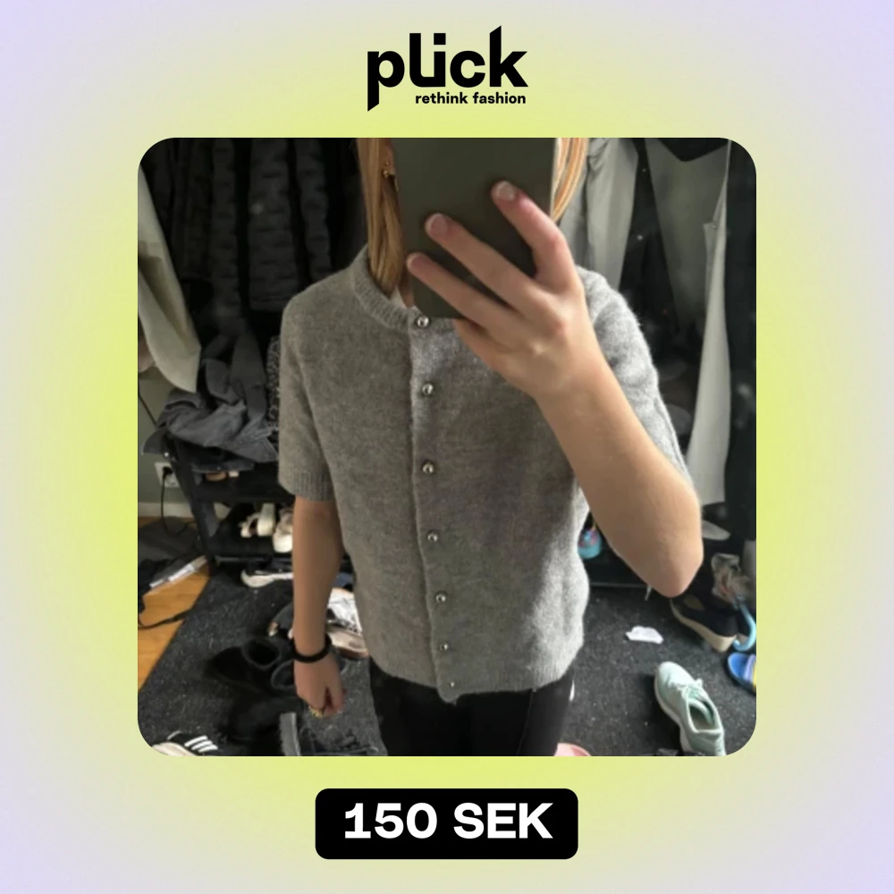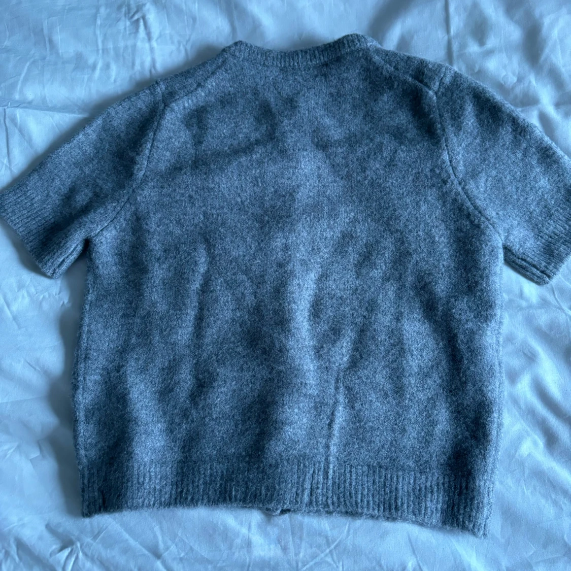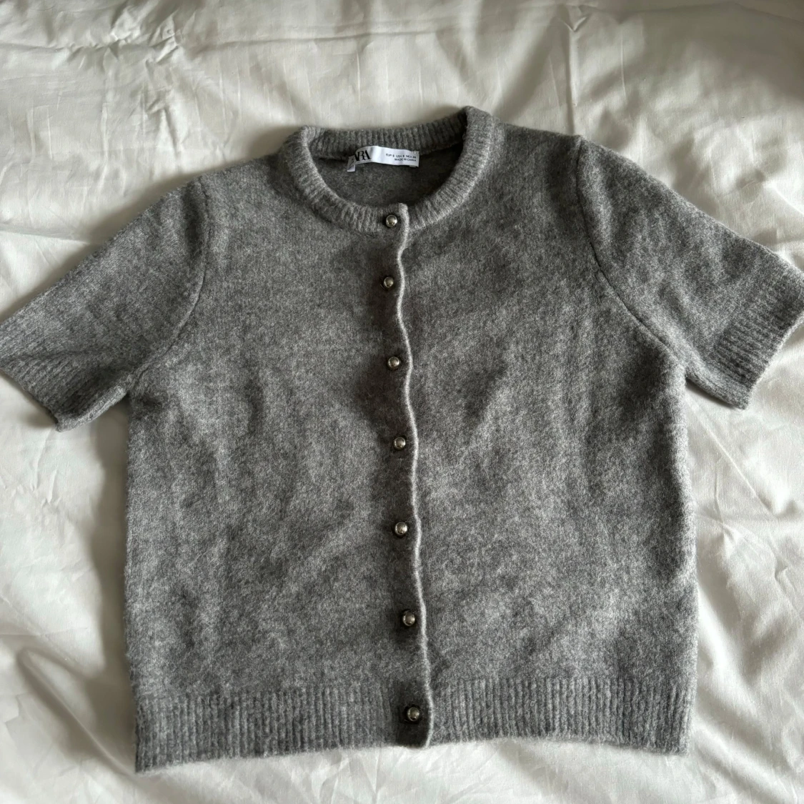 En grå mjuk stickad t-shirt med silvrig knappar från ZARA i storlek s