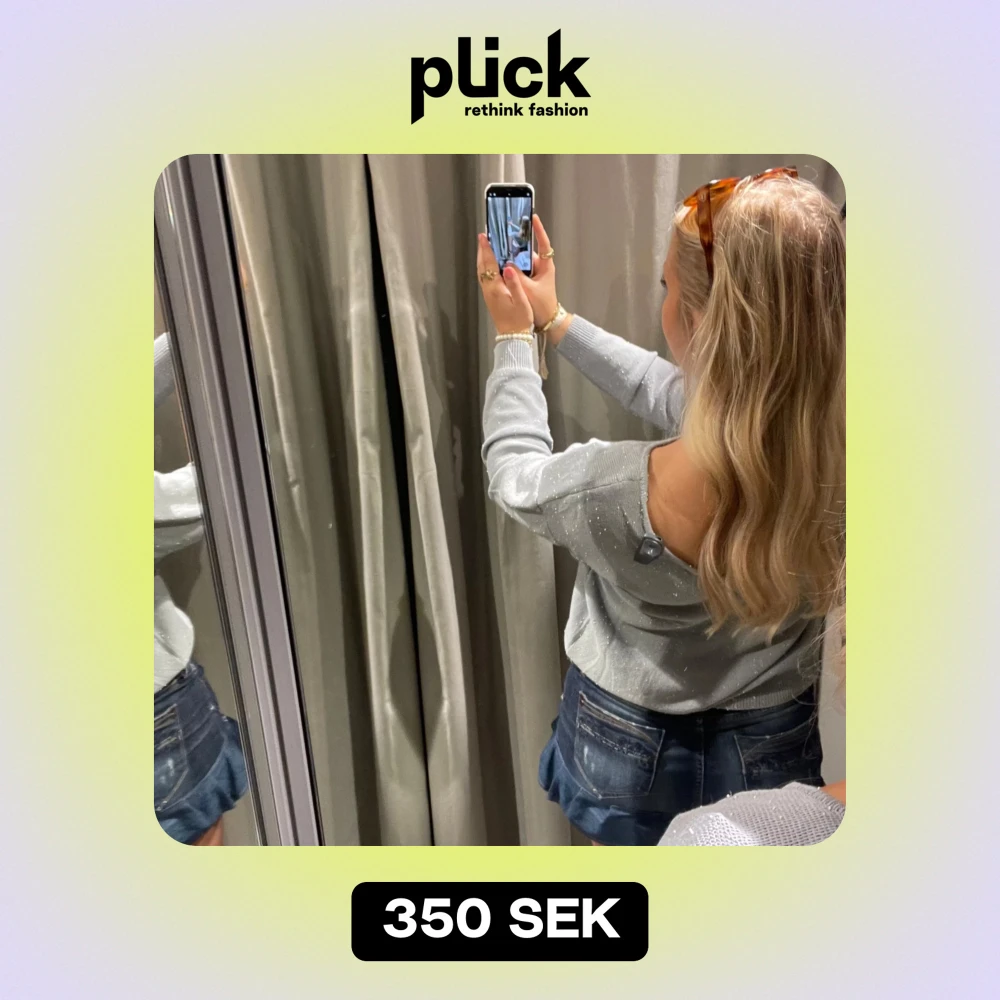 Säljer en superfin glittrig grå med lite små pärlor tröja. Den är perfekt för fest med även vardags. Tröjan har långa ärmar och en djupare rygg Perfekt att matcha med jeans eller kjol för en snygg look! Lappen är kvar