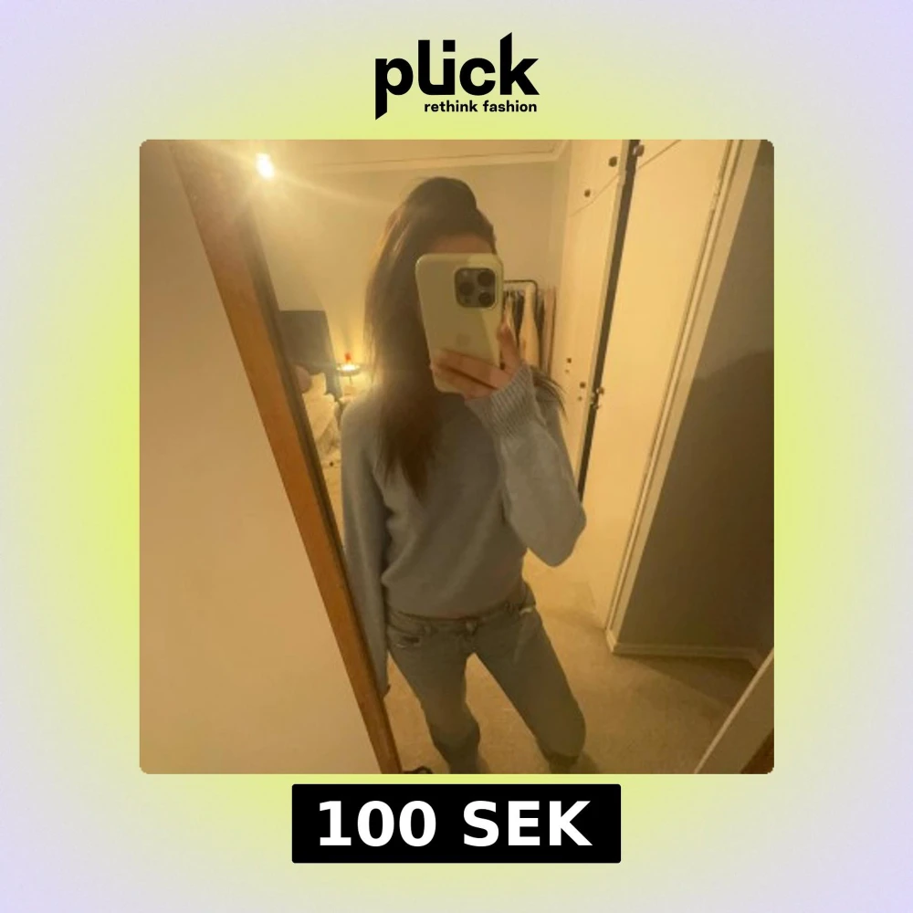 Säljer en mysig ljusblå stickad tröja med långa ärmar och ribbade kanter. Har även tre knappar uppe längs ryggraden! ✨
