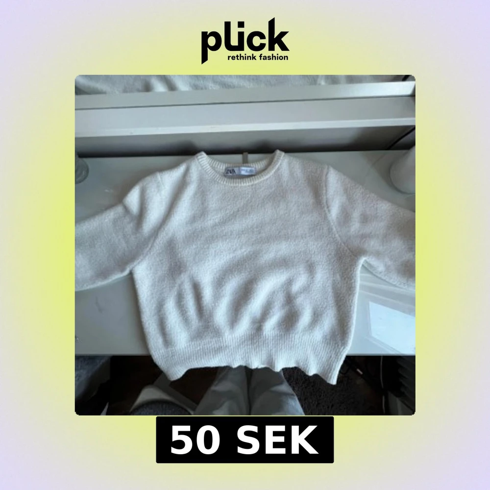 Säljer en mysig vit stickad tröja från Zara. Tröjan har en rund halsringning och långa ärmar. Perfekt för kyligare dagar. 🧶