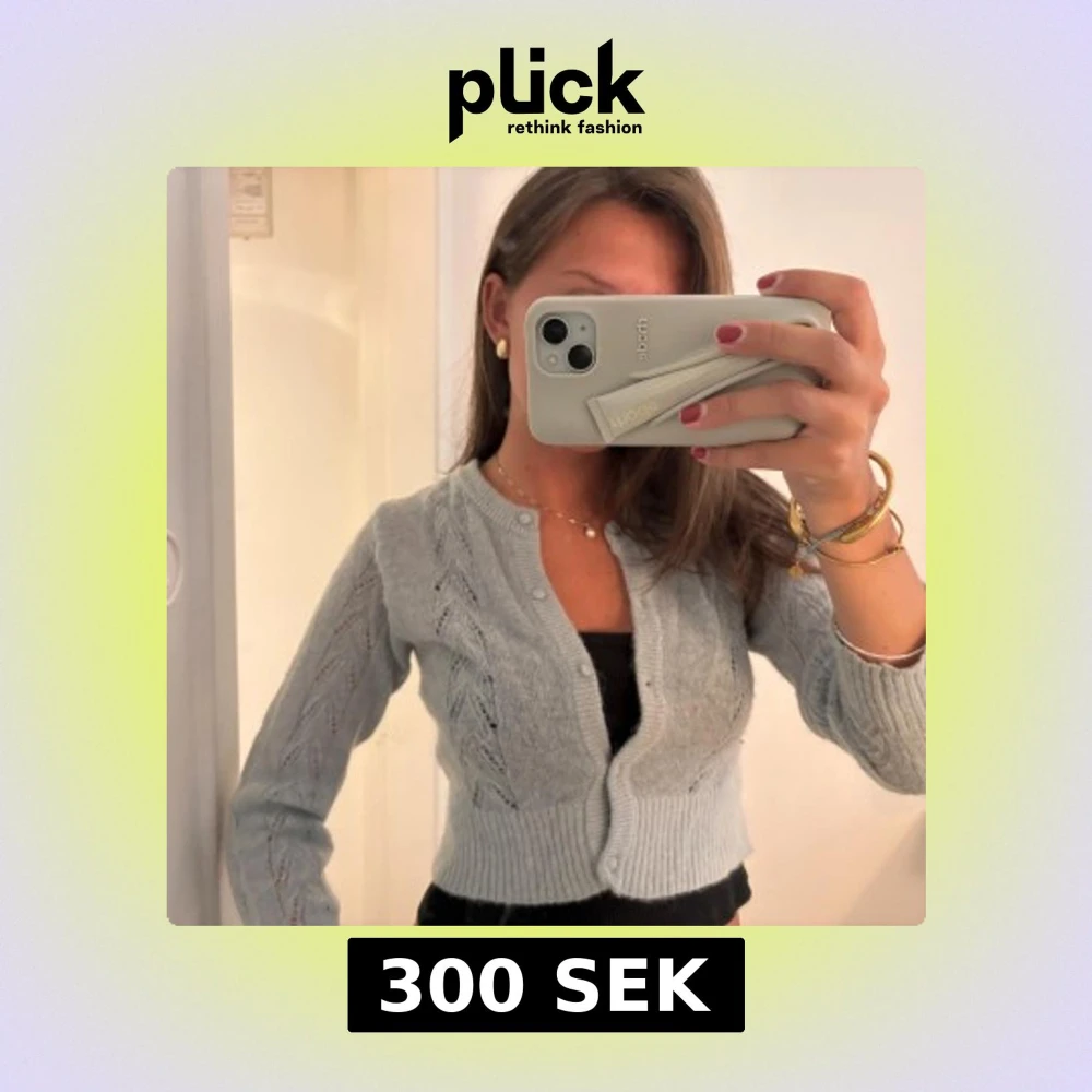 Superfin ljusblå kofta från Zara med snyggt hålmönster och ribbade muddar. Croppad modell med rund halsringning och knappar framtill. Perfekt att slänga över ett linne eller t-shirt för en chill look.