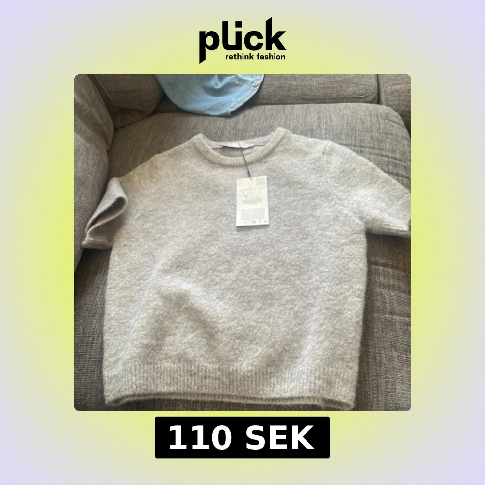 Supermjuk grå stickad tröja från Zara i storlek S. Tröjan har korta ärmar, rund halsringning och ribbade kanter. Aldrig använd! Väldigt populär tröja, stickad T-shirt🩷 original pris 329kr säljer för mycket billigare!