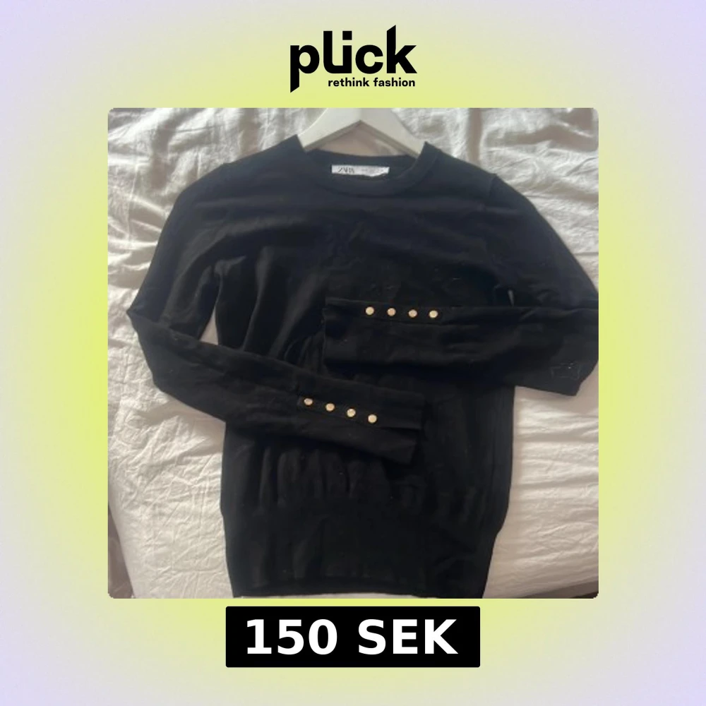 Svart långärmad tröja från Zara med snygga guldknappar på ärmarna. Enkel och stilren design med rund halsringning. Storlek S