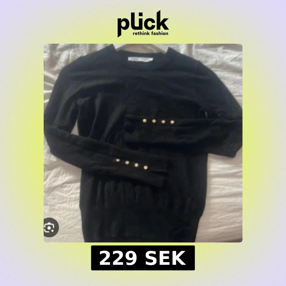 Svart långärmad tröja från Zara med snygga guldknappar längs ärmsluten. Tröjan har en klassisk rund halsringning och är i mjukt material som sitter skönt på kroppen. Perfekt för dig som gillar stilrena detaljer. Lånad bild, skrev för bilder och pris kan diskuteras!🥰