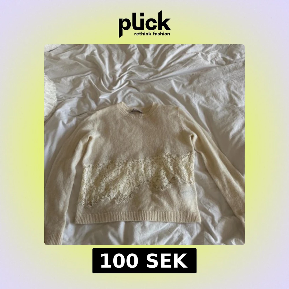 Superfin beige stickad tröja från Zara med bred spetsdetalj i blommigt mönster över magen och ryggen. Tröjan har rund halsringning och långa ärmar, perfekt för dig som gillar romantiska detaljer och mjuka material.