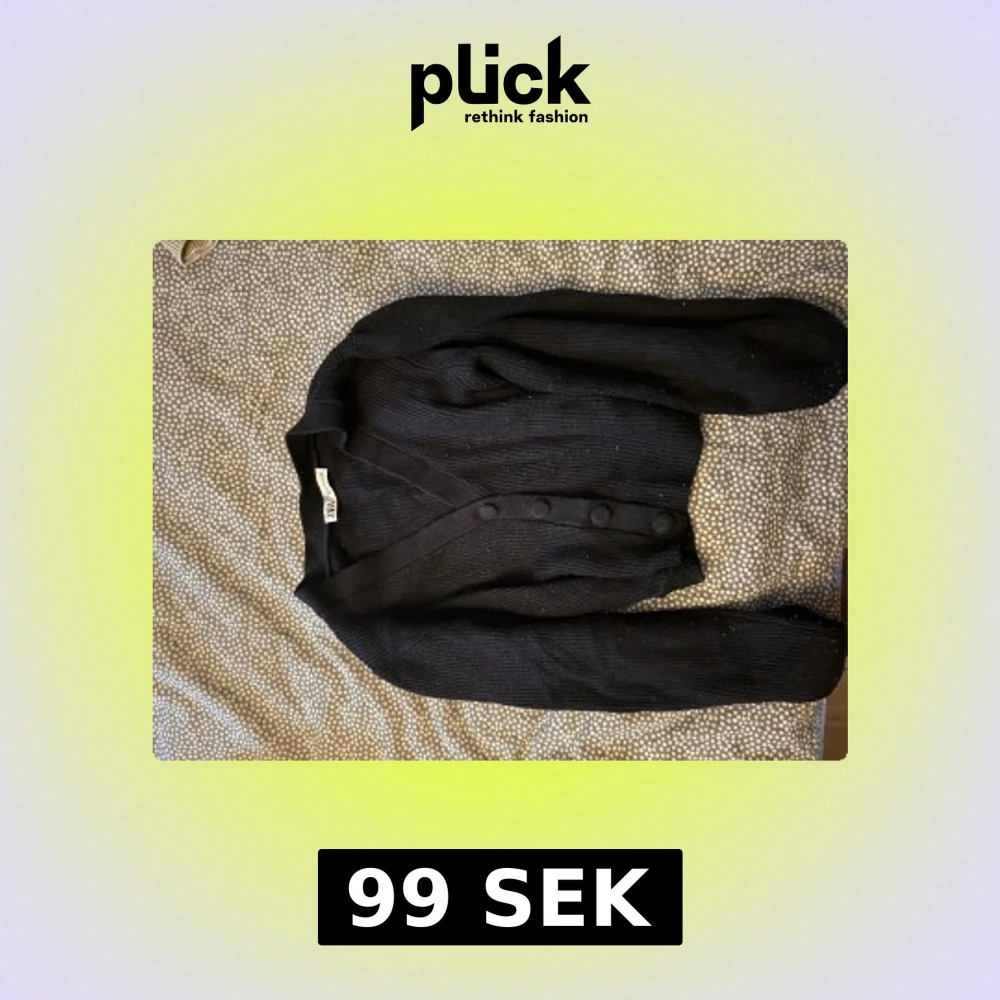 Svart ribbad kofta från Zara med v-ringning och stora knappar framtill. Långärmad och i mjukt stickat material som ger en skön och stilren look. Perfekt att slänga över en topp eller klänning för en chill vibe.