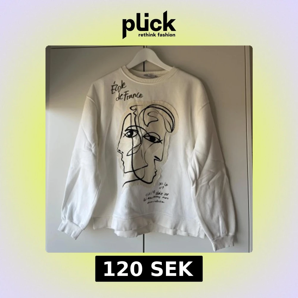 Säljer en vit sweatshirt från Zara med tryck på framsidan.