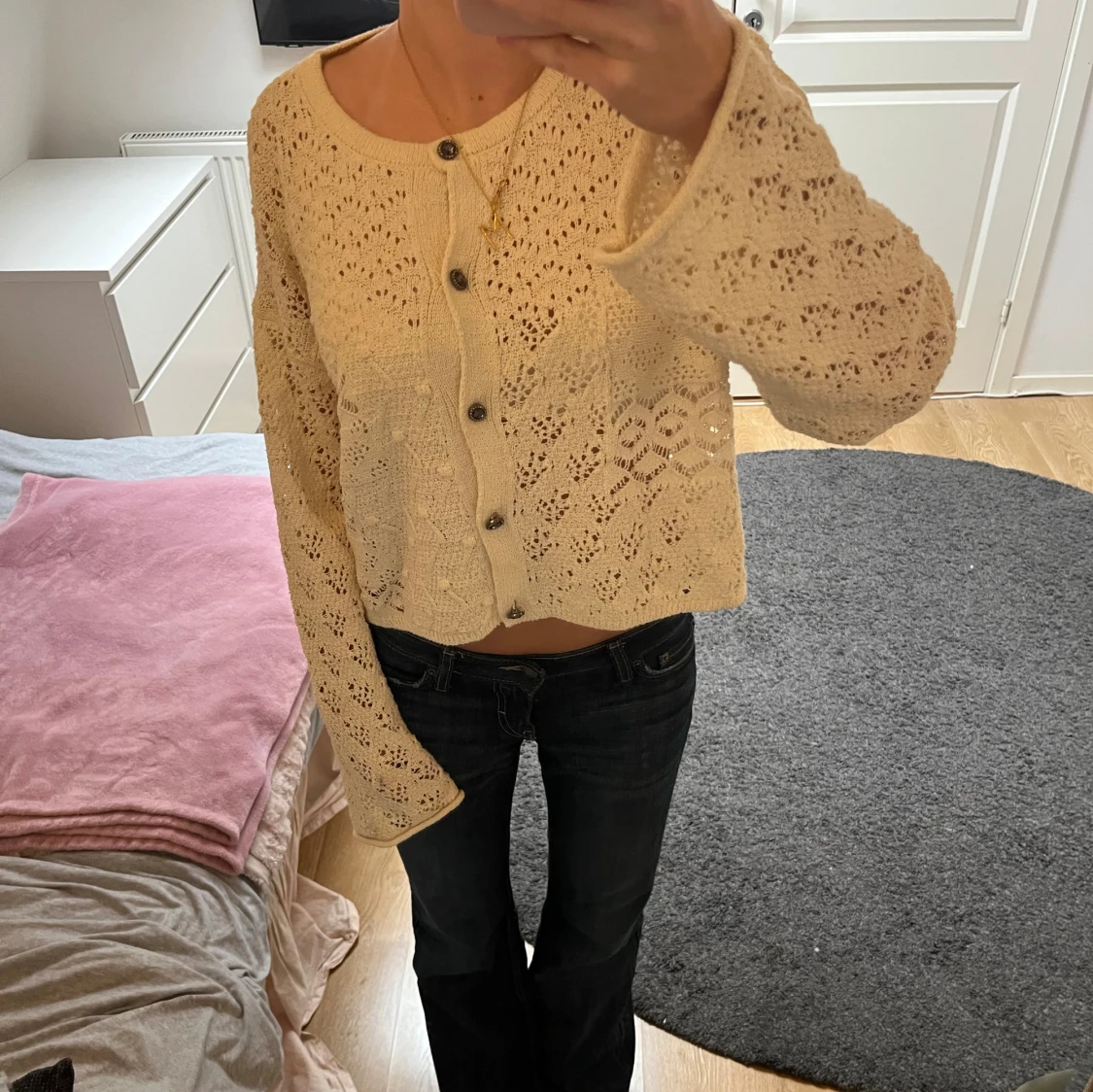 Vid stickad kofta från Zara med mönstrat material, knappt använt