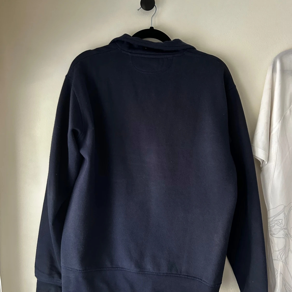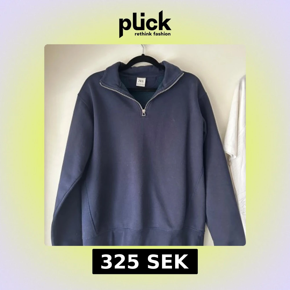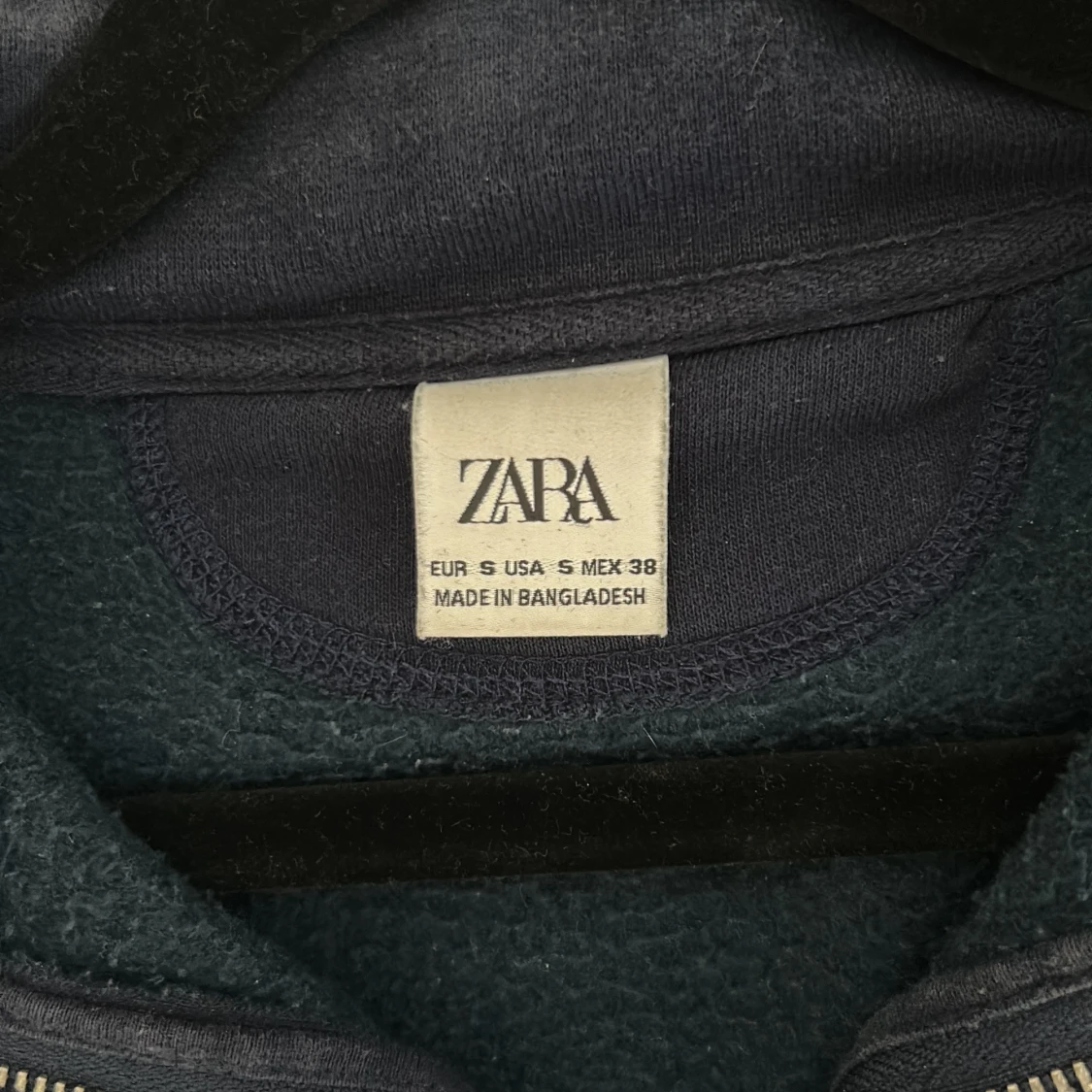 Snygg marinblå sweatshirt från Zara i storlek S med half zip-dragkedja vid kragen. Tröjan har långärmad design och är gjord i mjuk bomull med fleece på insidan för extra komfort. Perfekt för chill dagar och enkel att matcha med jeans eller joggers.