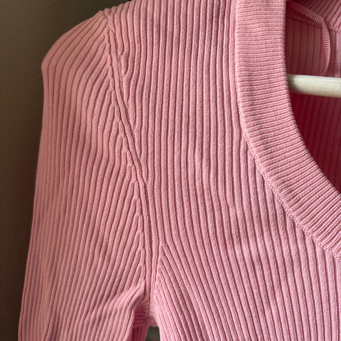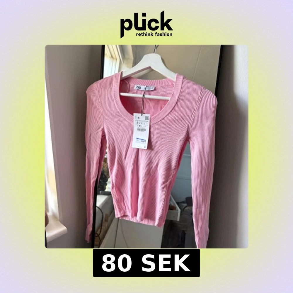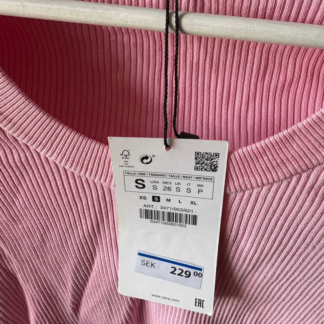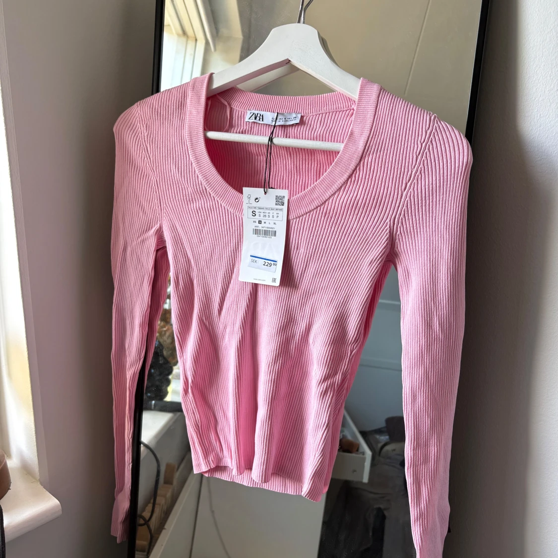Supersöt rosa långärmad tröja från Zara i ribbad bomull. Storlek S.