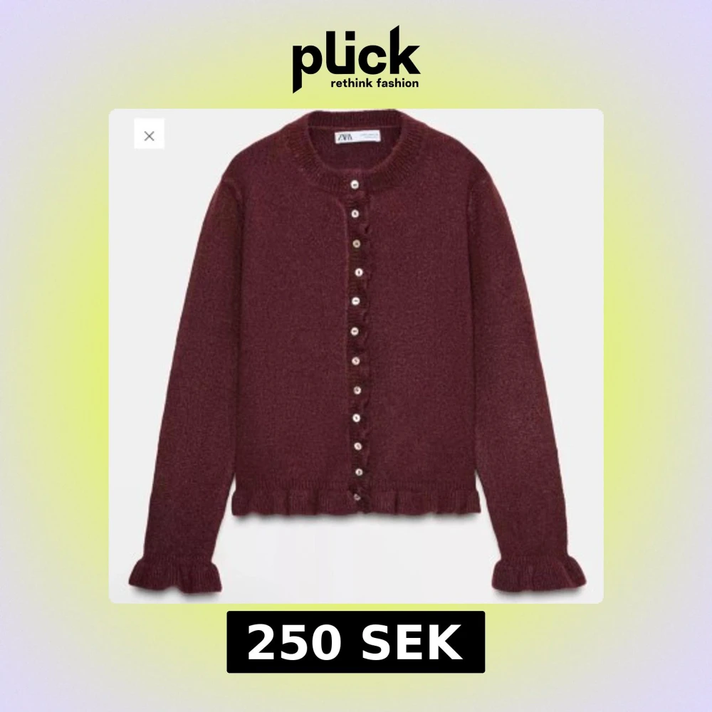 Superfin vinröd kofta från Zara med volangdetaljer vid ärmslut och nederkant. Aldrig använd och är i nyskick.