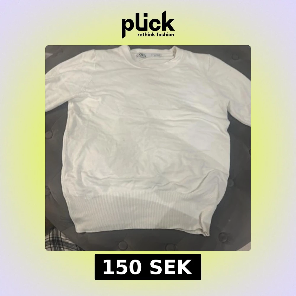 Enkel och stilren vit tröja från Zara i storlek S. Tröjan har rund halsringning, långa ärmar och bred ribbad mudd nedtill. Perfekt för lager-på-lager och passar till många olika outfits.