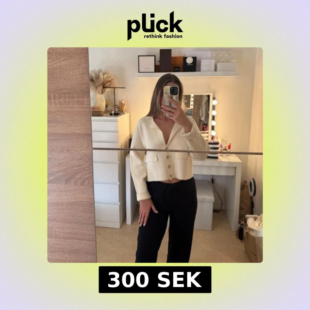 Säljer en vit kofta med knappar framtill. Koftan har en croppad passform och långa ärmar. Köpt från Zara i storlek S. Använd 1 gång.