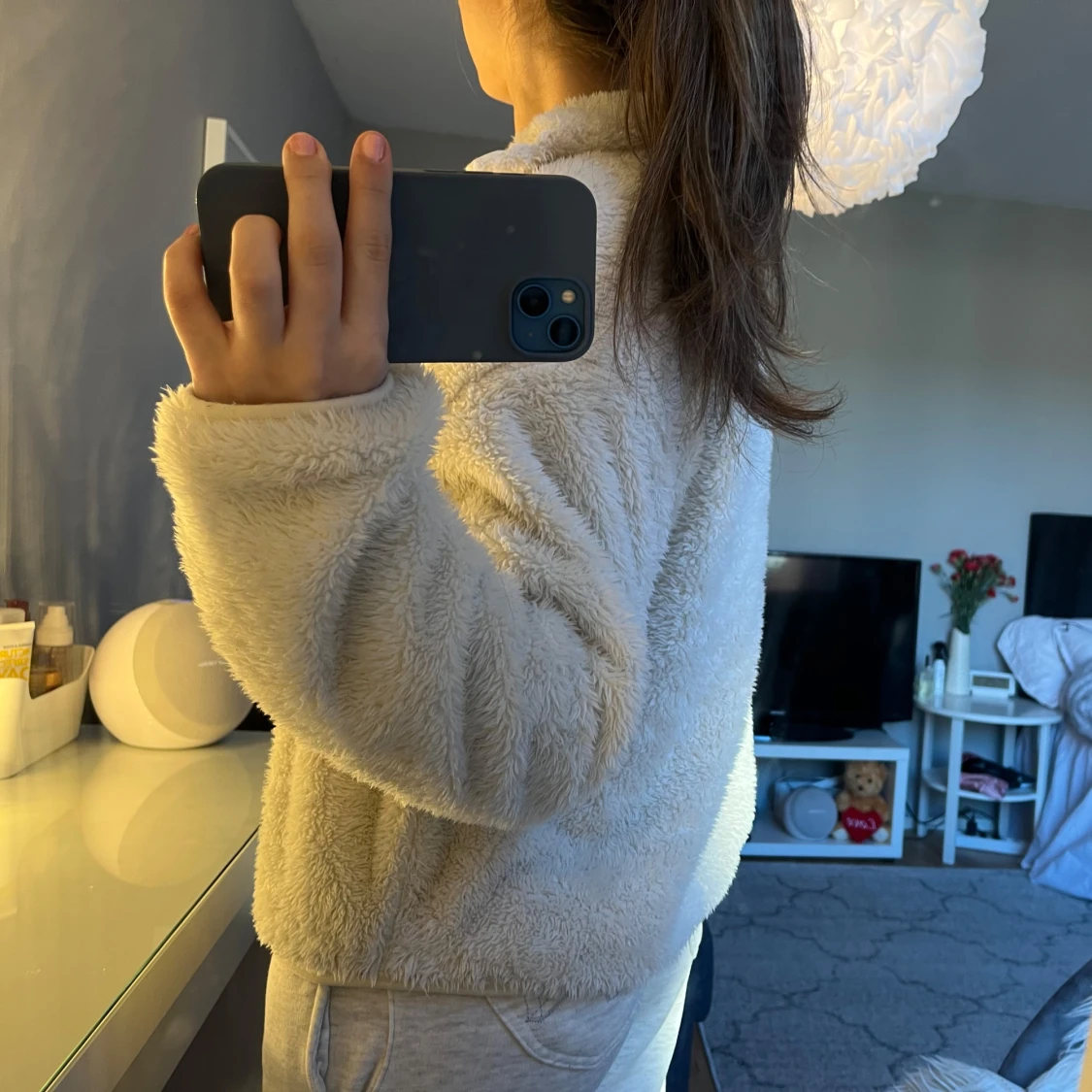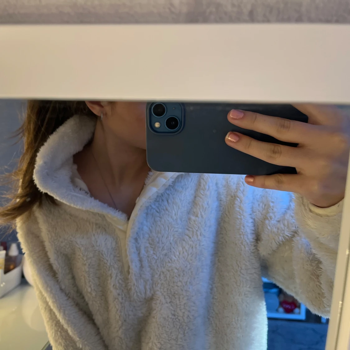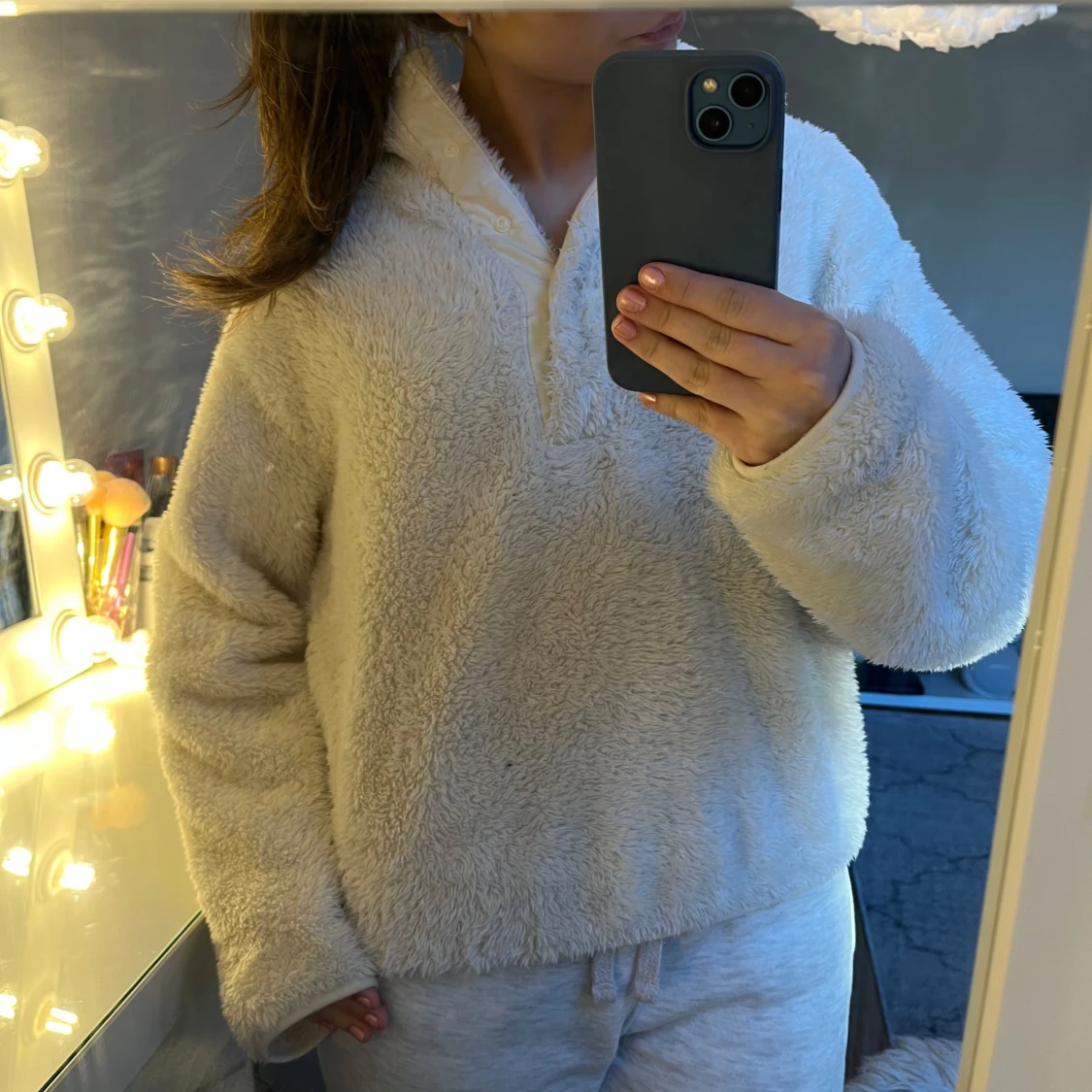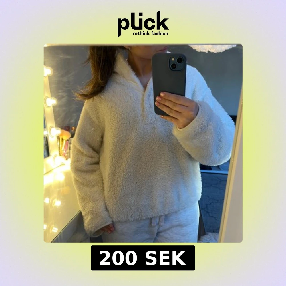 Mysig vit fleece hoodie med dragkedja och hög krage (syns på tredje bilden). Super gosig och fint skick!!