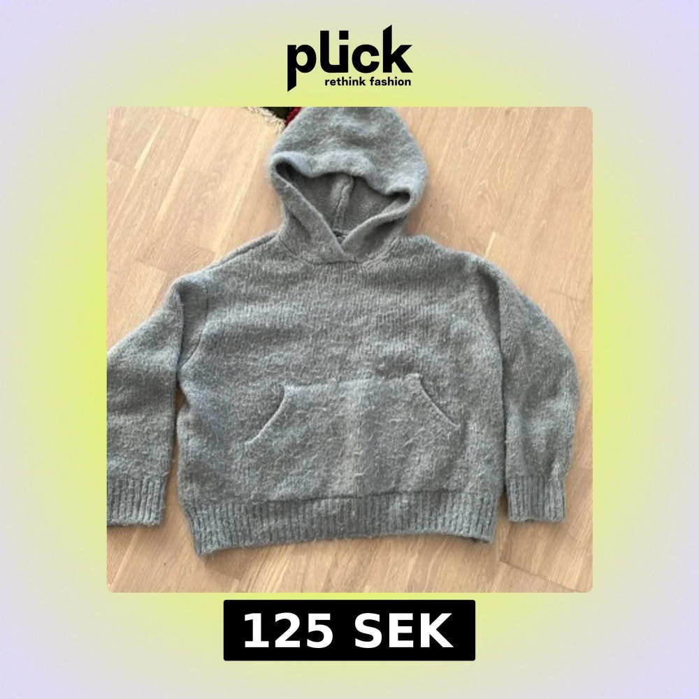 Mysig grå stickad hoodie från Zara med stor huva och magficka. Tröjan har ribbade muddar vid ärmslut och nederkant, vilket ger en chill och avslappnad vibe. Perfekt för kalla dagar när du vill vara både bekväm och snygg.