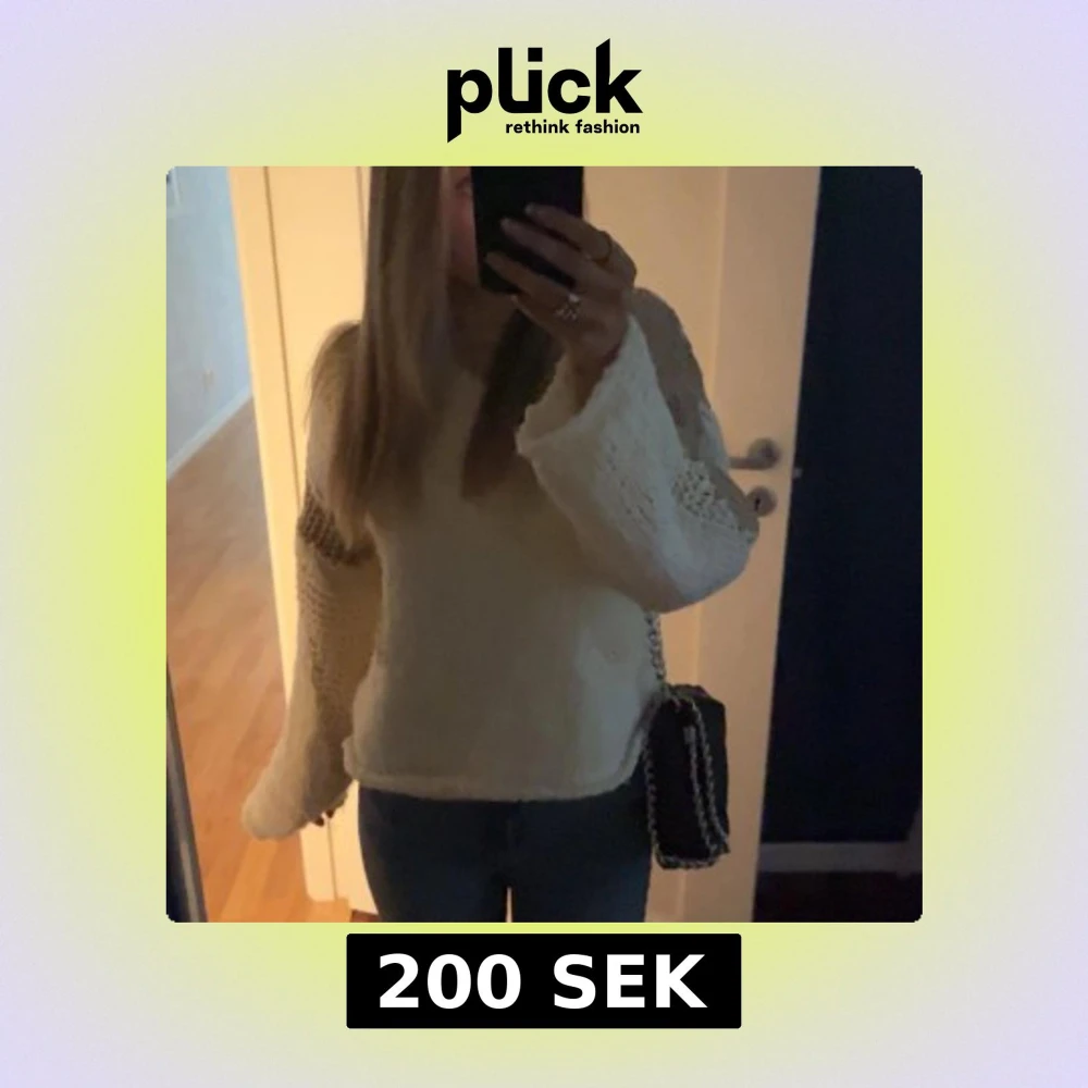 Säljer en mysig vit stickad tröja med långa ärmar och en lös passform. Perfekt för både kyliga dagar men också varmare och ger en avslappnad look. Tröjan har en enkel design som gör den lätt att matcha med olika outfits, storlek XS från Zara💕